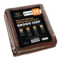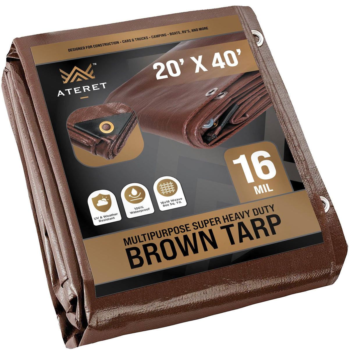 Ateret 20' X 40' Super Heavy Duty 16 Mil Brown Poly Tarp Cover - Uv Resistant, Thick Waterproof, Rip And Tear Proof Tarpaulin With Grommets And Reinforced Edges