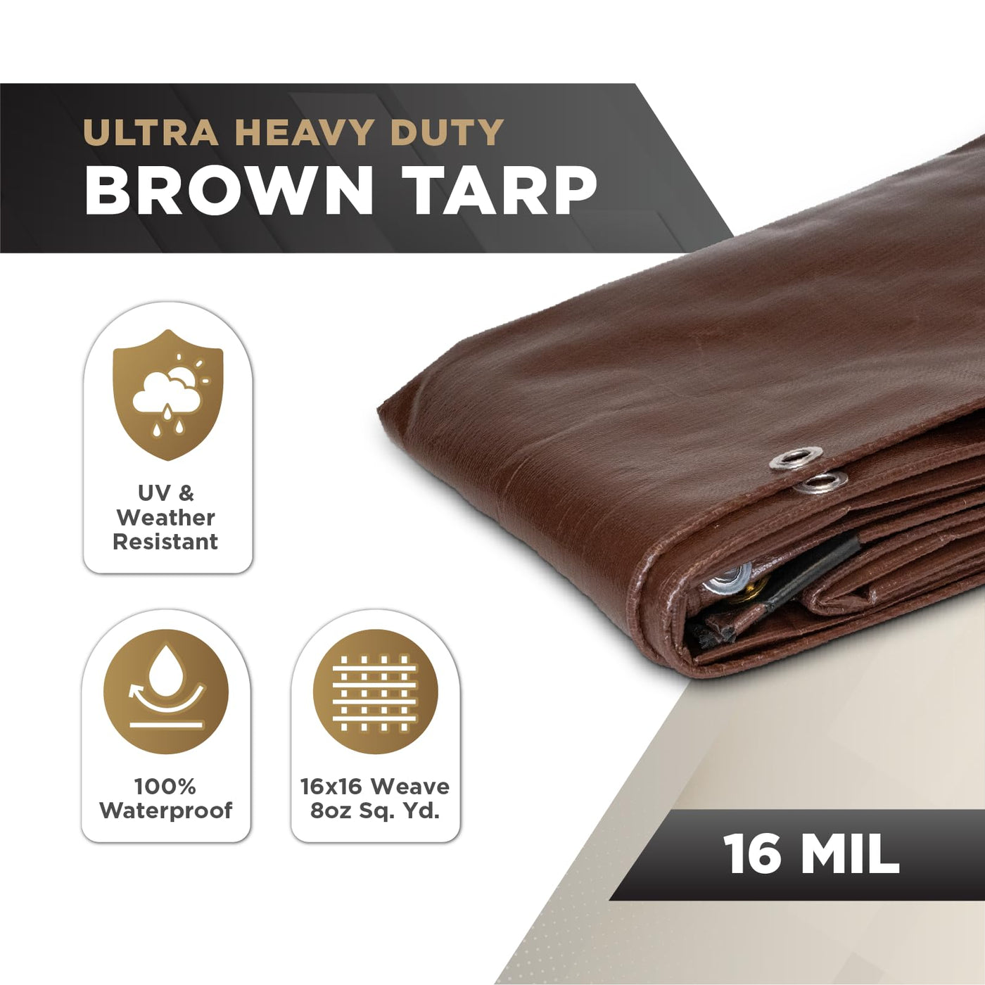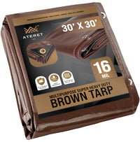 Ateret 30' X 30' Super Heavy Duty 16 Mil Brown Poly Tarp Cover - Uv Resistant, Thick Waterproof, Rip And Tear Proof Tarpaulin With Grommets And Reinforced Edges