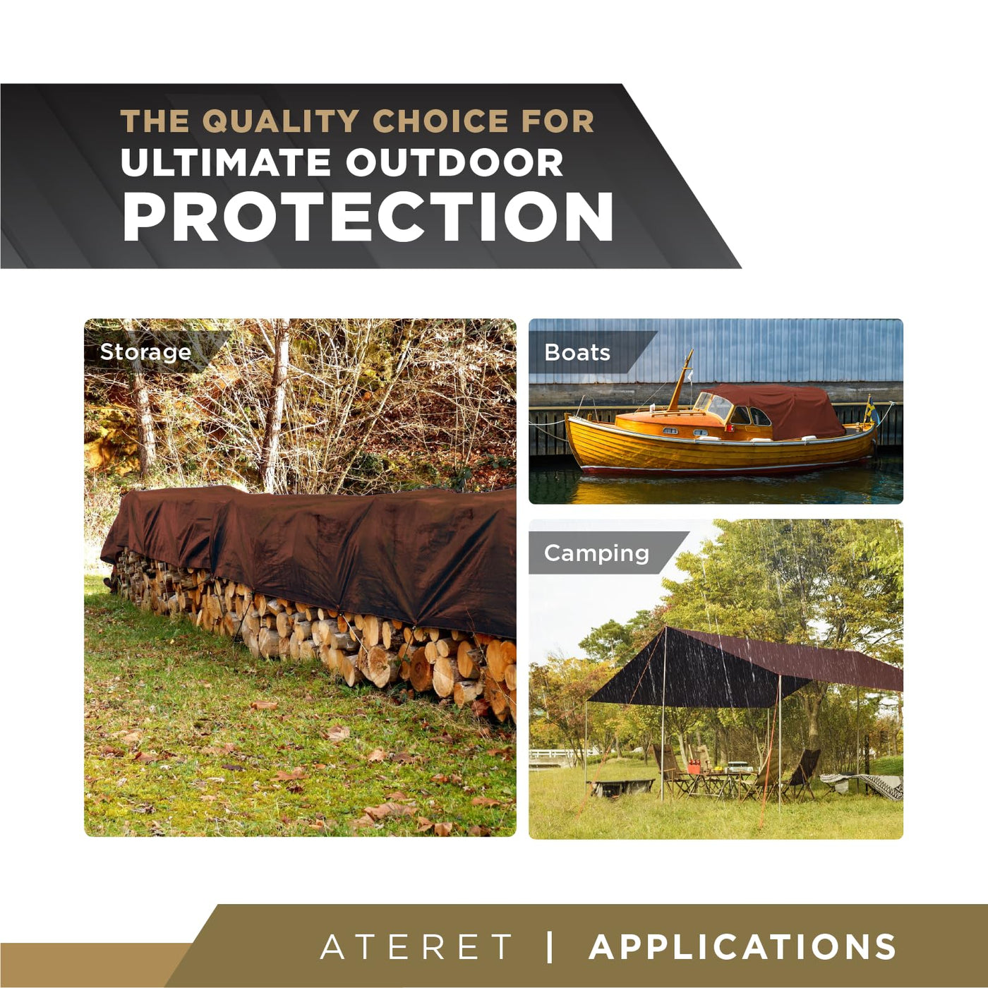 Ateret 8' X 10' Super Heavy Duty 16 Mil Brown Poly Tarp Cover - Uv Resistant, Thick Waterproof, Rip And Tear Proof Tarpaulin With Grommets And Reinforced Edges