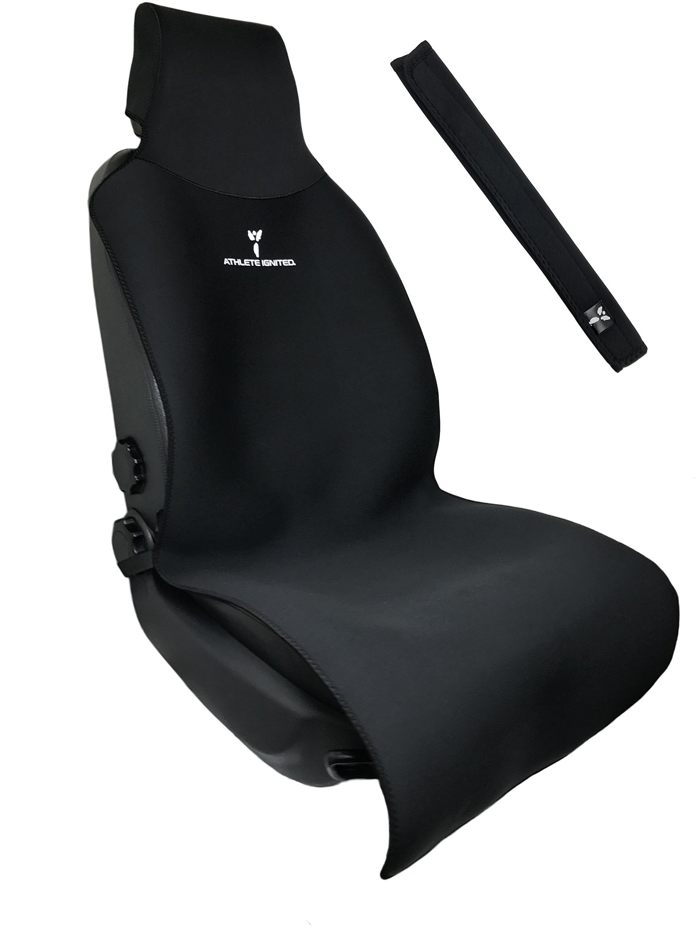 Athlete Ignited™ Universal Fit Waterproof And Sweatproof Seat Cover + Seat Belt Cover 22X59 (Black)