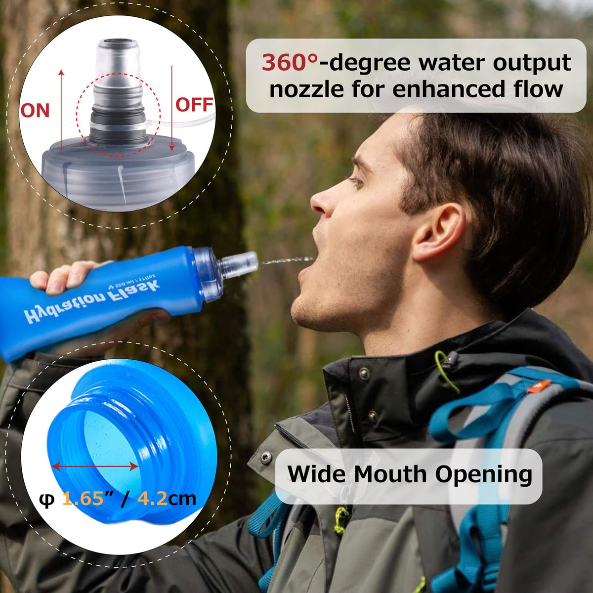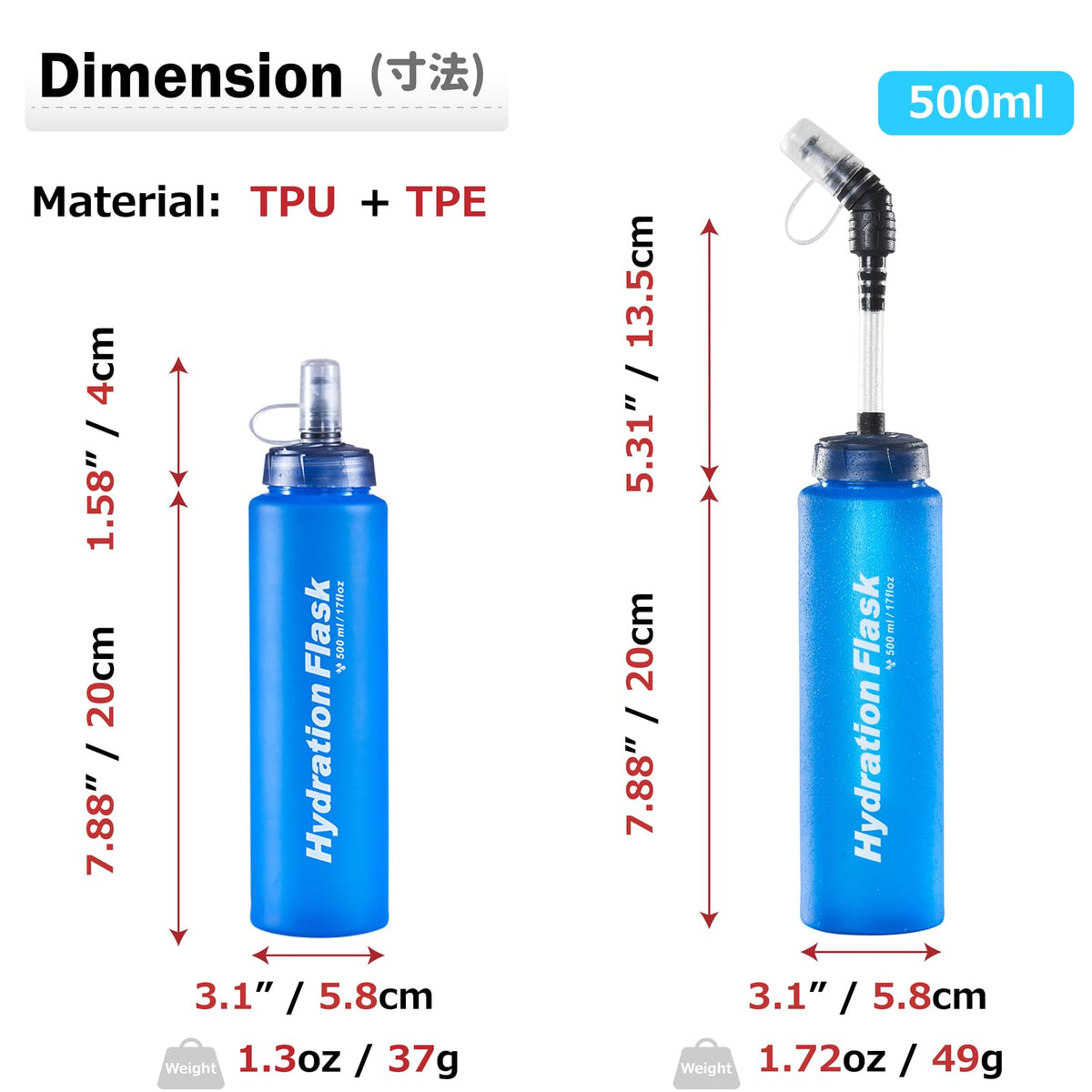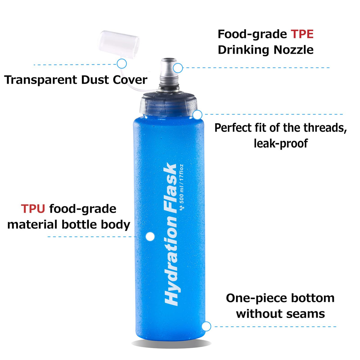Azarxis Tpu Soft Flask Running Water Bottles Collapsible Bpa-Free For Hydration Pack - Ideal For Running Hiking Cycling Climbing (500Ml/16.9Oz - 2 Pack)