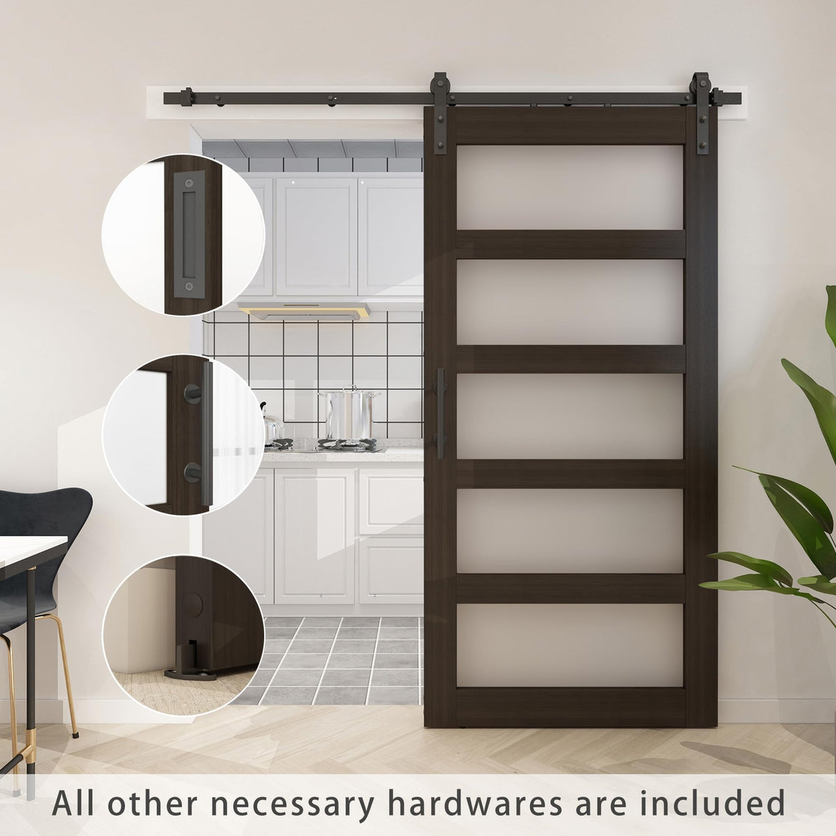 Barnsmith 36In X 84In Glass Barn Door With 6.6Ft Sliding Door Hardware Kit Included & Handle,5-Panel Frosted Glass Solid Wood Slab With Water-Proof Pvc Surface,Pre-Drilled Easy Assembly,Brown