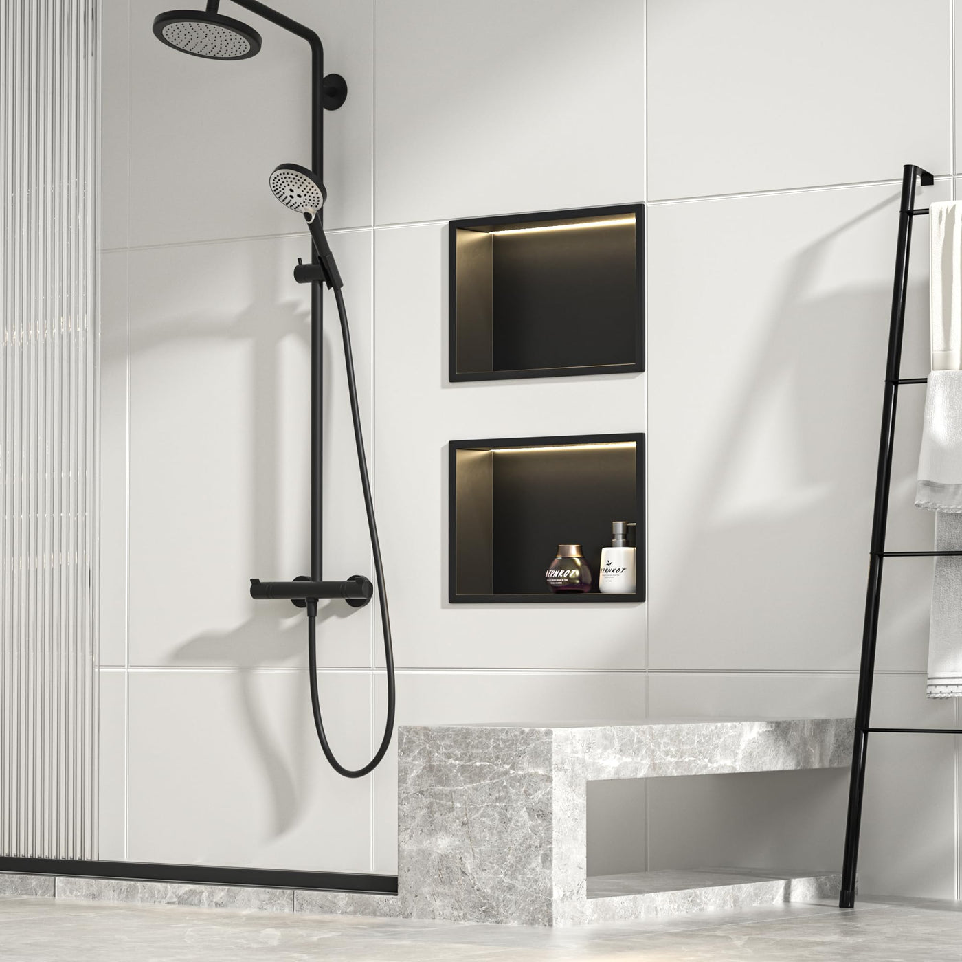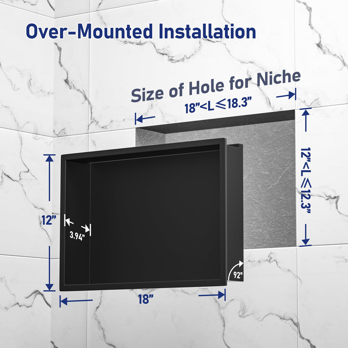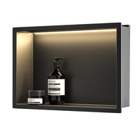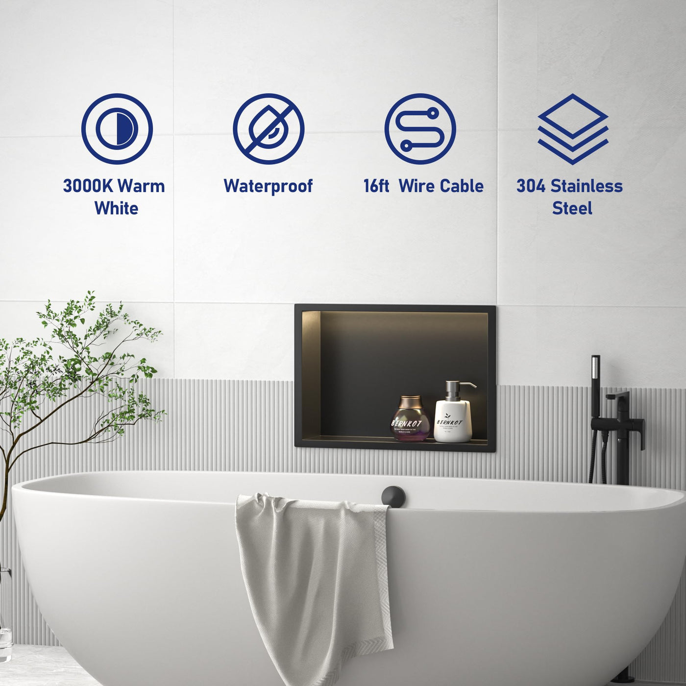 Bernkot Stainless Steel Led Shower Niche 18' X 12' Matte Black With Lighting Waterproof No Tile Need Shower Niche For Bathroom Recessed Wall Niche Over-Mounted Installation