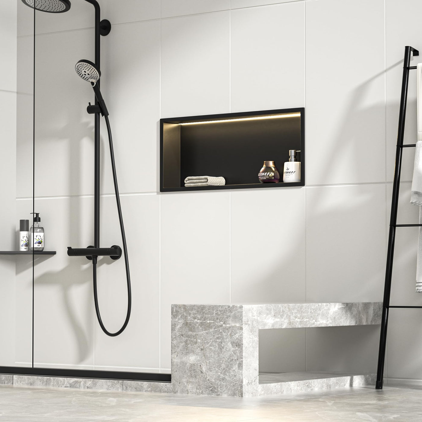 Q: Can the shower niche be used for purposes other than a shower?A: Yes, the Bernkot shower niche can be used for various storage solutions beyond the shower, such as in cupboards or bookshelves, providing an ambient lighting option while organizing your items.