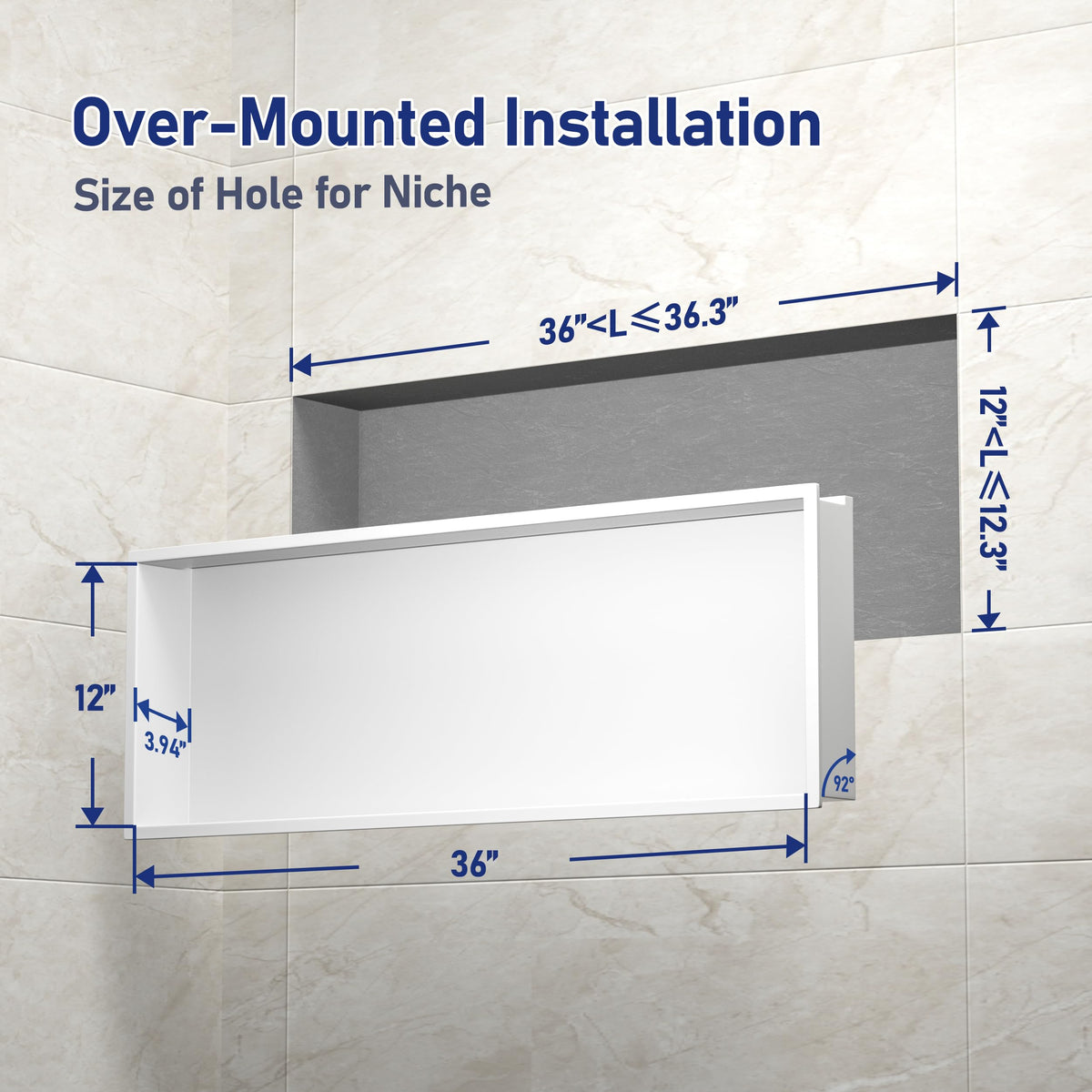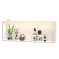 Bernkot Stainless Steel Led Shower Niche 36' X 12' White With Lighting Waterproof No Tile Need Shower Niche For Bathroom Recessed Wall Niche Over-Mounted Installation