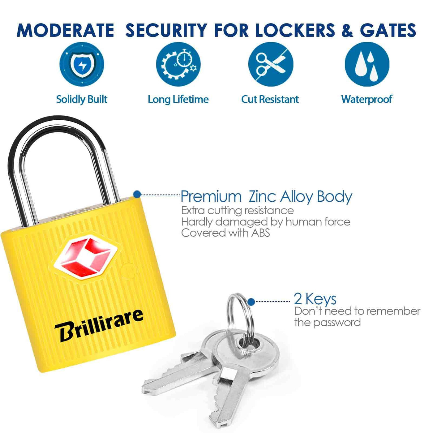 Brillirare 4 Pack Tsa Approved Luggage Locks With Keys, Travel Padlock, Zinc Alloy Waterproof Keyed Lock, Tsa Outdoor Metal Lock For Lockers, Bags, Backpack, Gym, Gate-Yellow