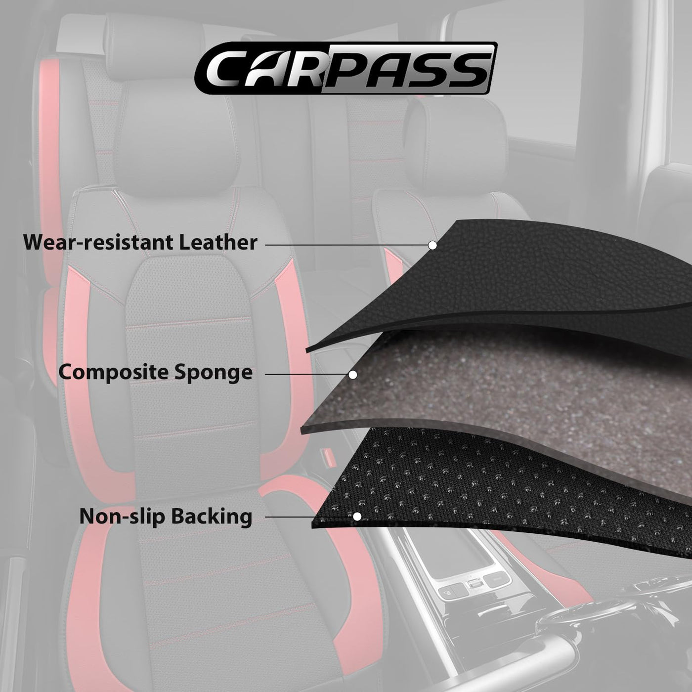 CAR PASS 5 Seats Leather Car Seat Covers, Sideless Car Seat Protectors with Storage Pocket, Water Resistance Seat Cover, Universal Fit Most Cars, SUVs, Trucks and Vans (Full Set,Black and Red) Color: Black and Red Size: Full Set Weight: 4.5KG Material: Premium Wear-resistant Leather Universal Fit Detachable Headrest Airbag Compatible Sideless design & Storage pocket Non-slip Design Easy To Install