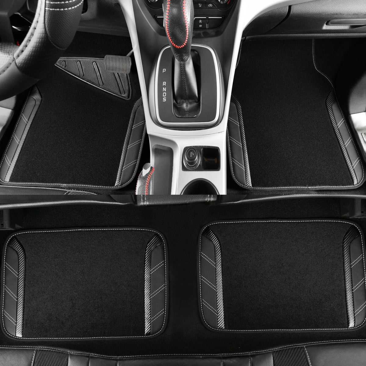 CAR PASS Leather Steering Wheel Cover and Waterproof Car Floor Mats,Microfiber Universal Car Combo Fit for 95% Sedan,SUV,Cars,14.5-15inch Sporty Anti-Slip Safety Comfortable Design(Carbon Fiber Black)