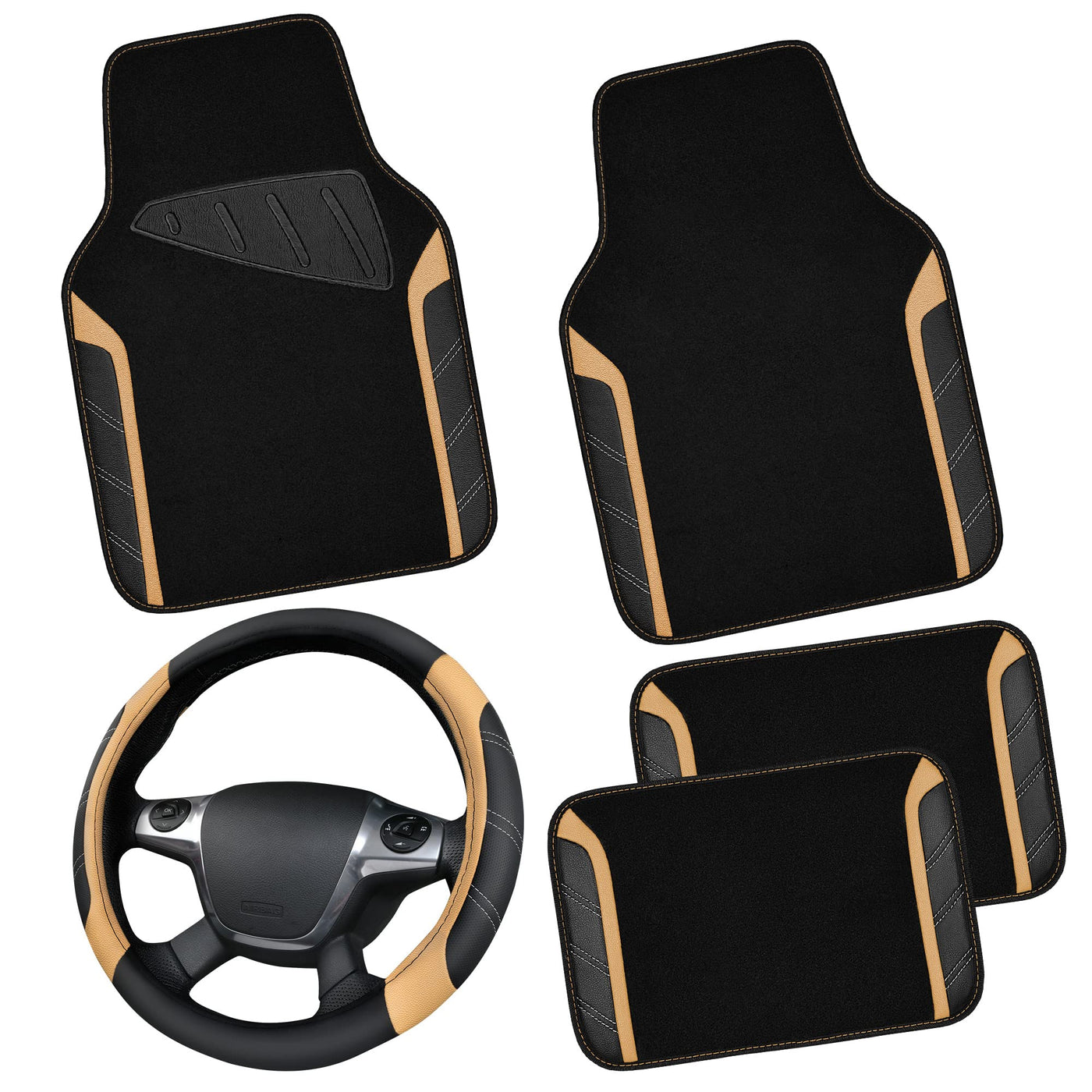 Car Pass Microfiber Steering Wheel Cover And Waterproof Car Floor Mats,Leather Universal Car Combo Fit For 95% Truck,Suv,Cars,14