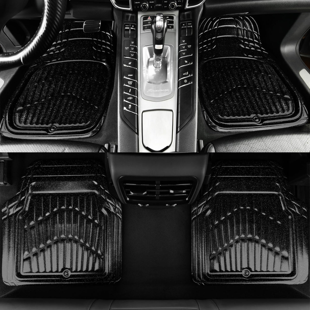 CAR PASS Shining Glitter Car Floor Mats 3D Leather Waterproof All Weather, Universal Trim to Fit & Anti-Slip, Safety & Light Easy Clean Install Fit for SUV,Truck,Auto,Sedan,Van 4 Piece (Shiny Black)