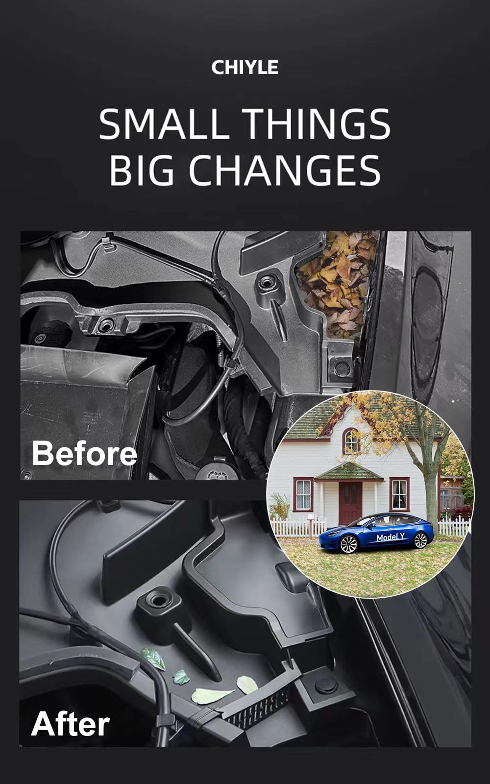 Chiyle Tesla Model Y Hood Water Barrier Box,Water Guide Grille Channel For Front Trunk 2021 2022 2023 2024 Model Y Accessories,Essential For Tesla Y Owners(1 Set)