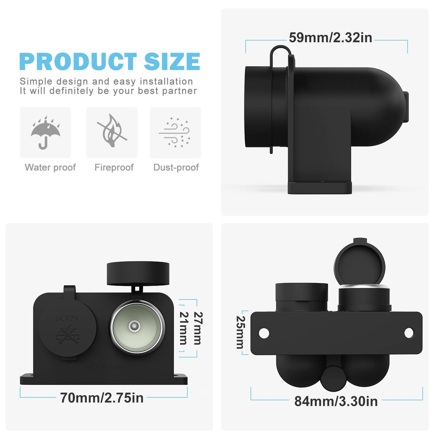 Cigarette Lighter Socket, Waterproof&Dustproof Cigarette Lighter Splitter for car truck motorbike boat, with 15A Blade Fuses (CL