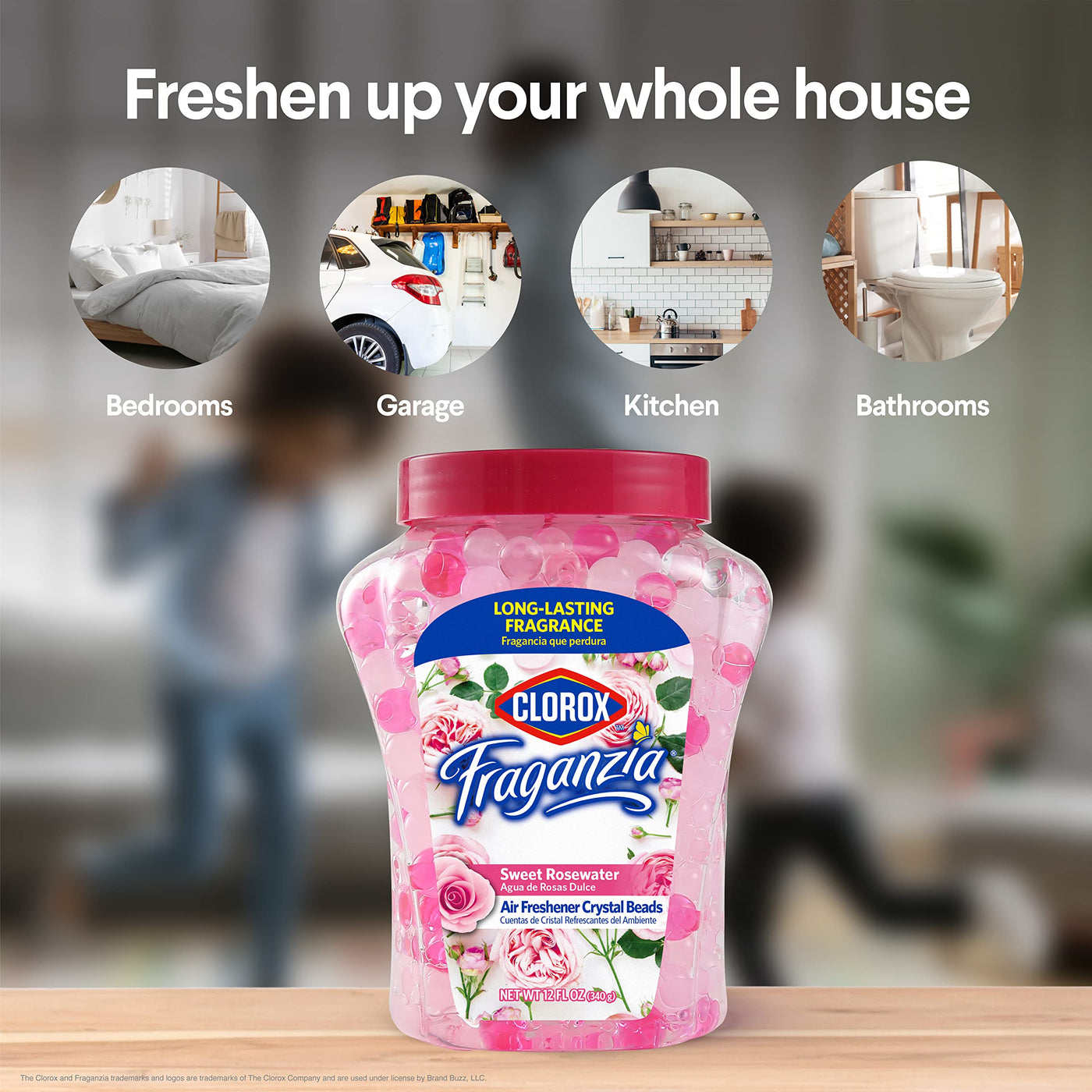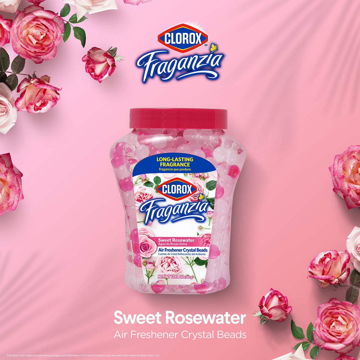 Clorox Fraganzia Air Freshener Crystal Beads Sweet Rosewater 12oz | Long-Lasting Air Freshener Beads 12 Ounces | Easy to Use Ven