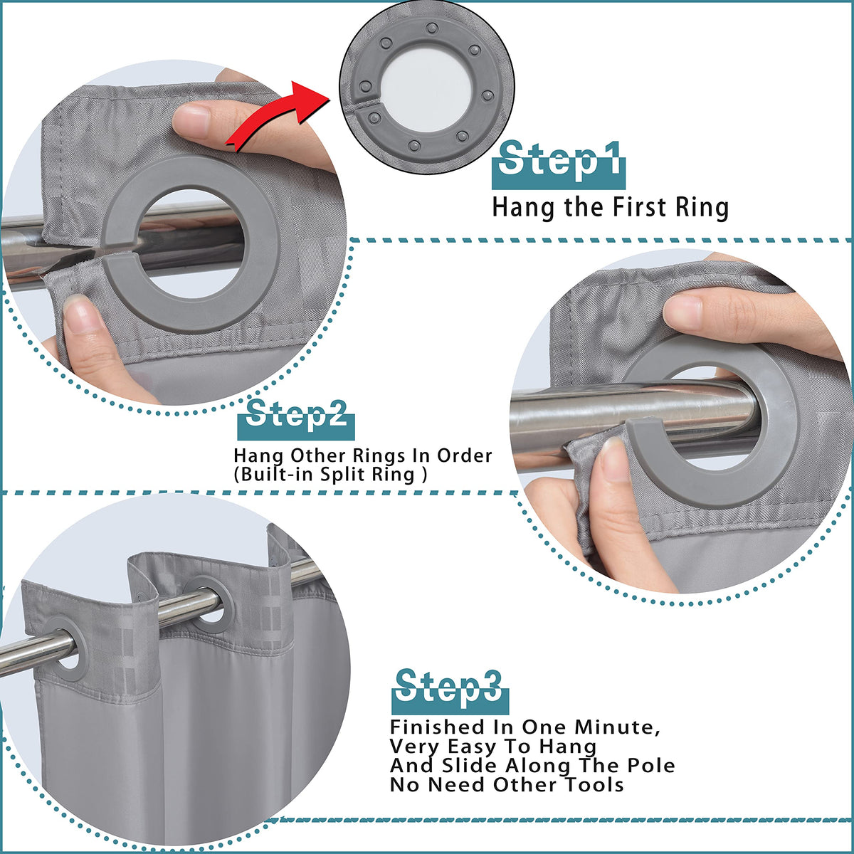 Q: How easy is it to install the shower curtain?A: Installation is super easy with the Conbo Mio shower curtain. It comes with high-quality flex on rings that allow you to set it up in just one minute, making it simple to hang and slide along the pole.