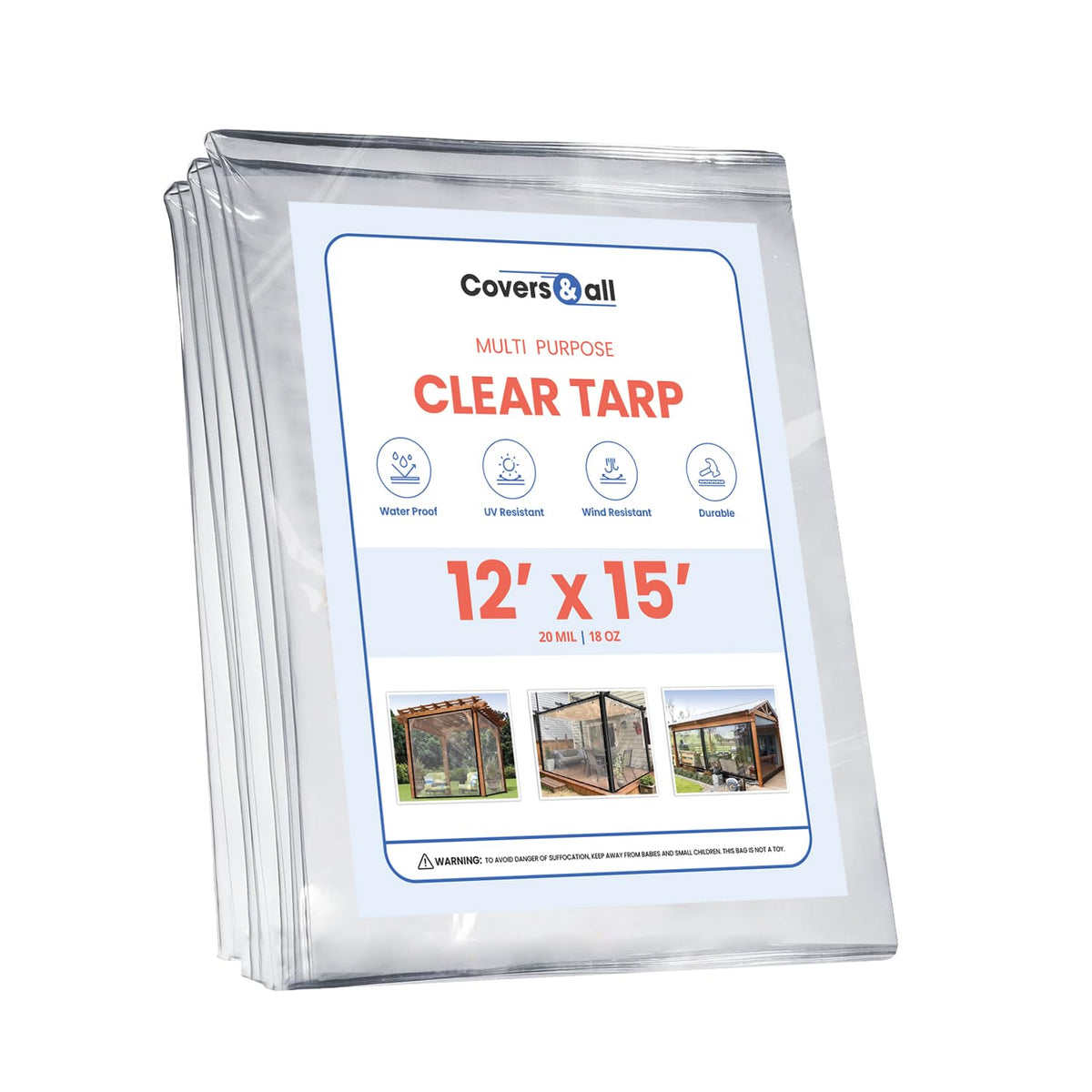 Covers & All Clear Tarps Made Of Waterproof & Tear Resistant Vinyl Coated Pvc Material, 18 Oz, 560 Gsm 20 Mil Tarpaulin (12' H X 15' W Feet)