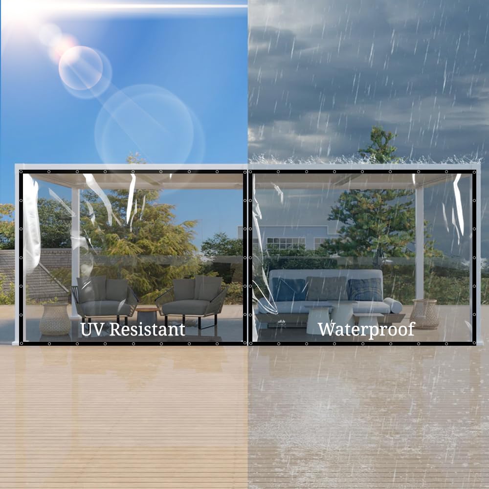 The clear vinyl tarps are made of PVC Tarp clear fabric. This weather-resistant material provides complete protection against wind, rain, dirt, and dust, without blocking out the natural light. Weighing 18 Oz, the durable tarps are tear and abrasion-resistant. Constructed using waterproof material, they do not get damaged by moisture and last for a long time. They can be used for both indoor and outdoor applications. The transparent color of the tarp offers an unobstructed view and forbids dust, debris, snow, or any other outdoor elements to enter inside. You can use them for construction hoarding, patio/porch enclosure, curtains, sidewalls for tents, industrial cover, building enclosure, etc.