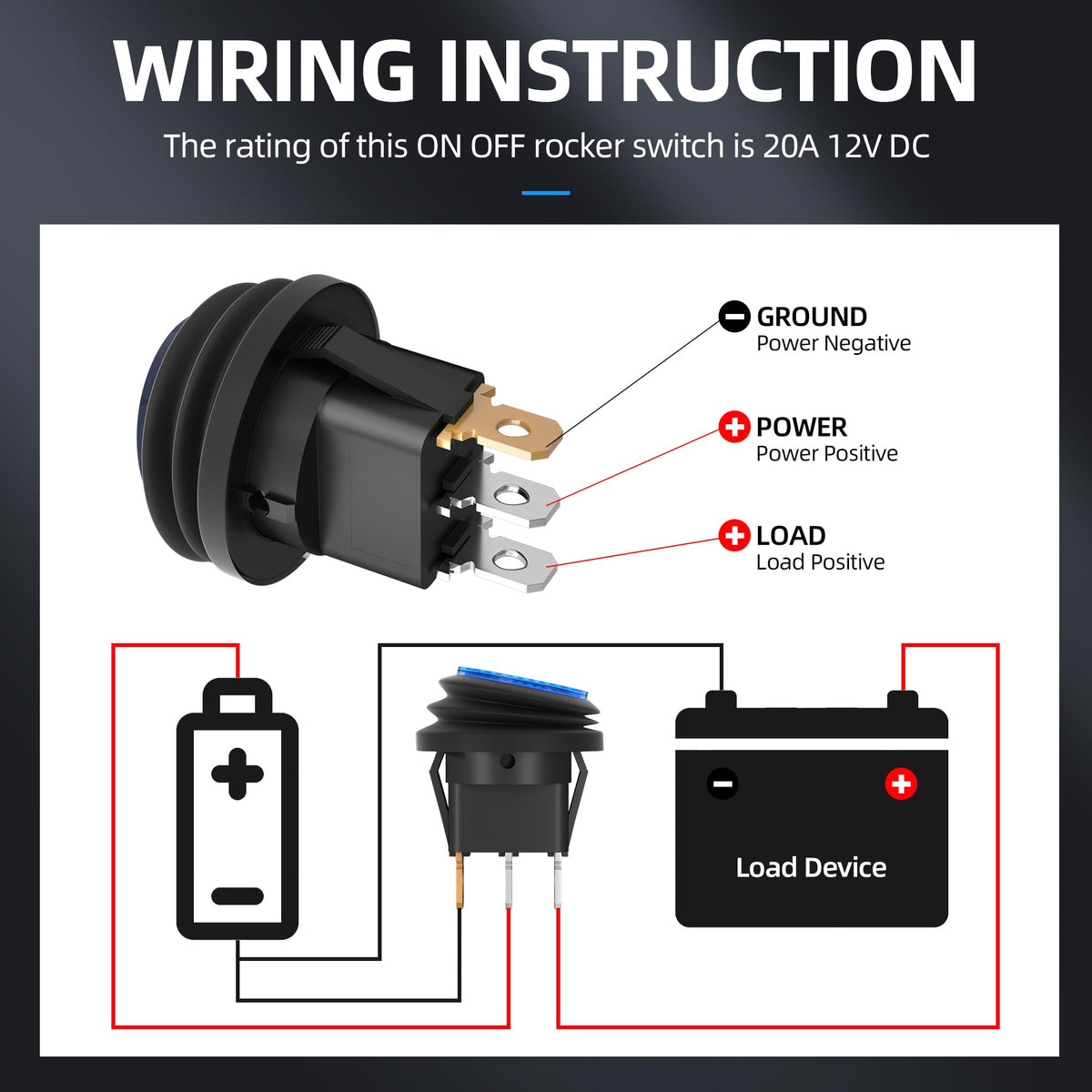Q: Is the rocker switch waterproof?A: Yes, this rocker switch features a waterproof rubber cover, allowing it to be safely used in moist environments like boats, trucks, and other outdoor vehicles.