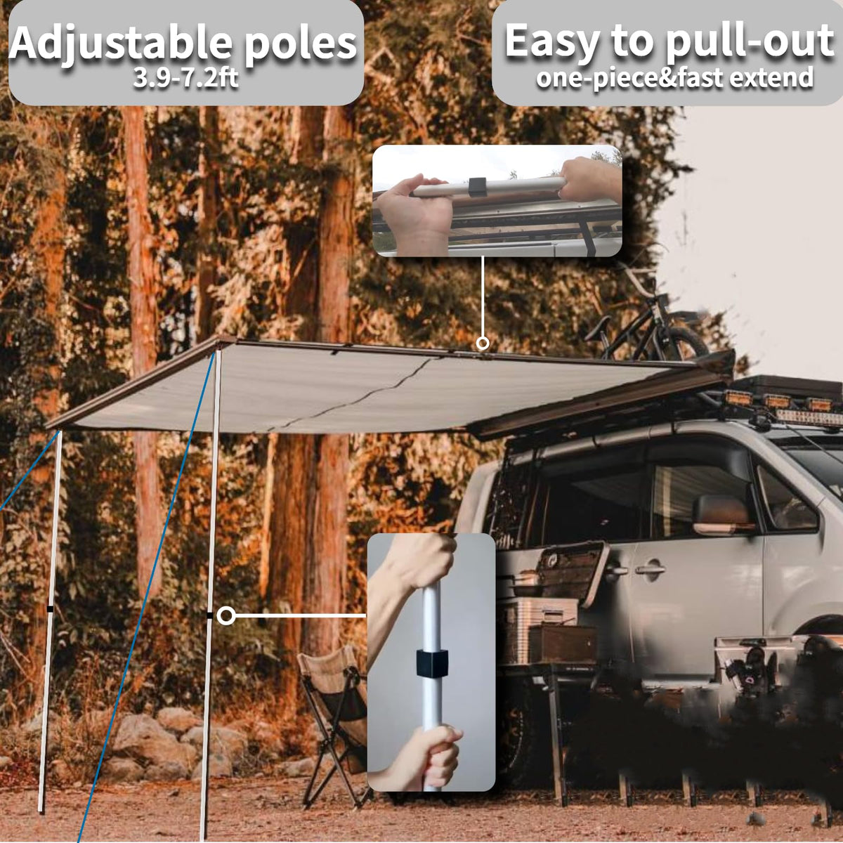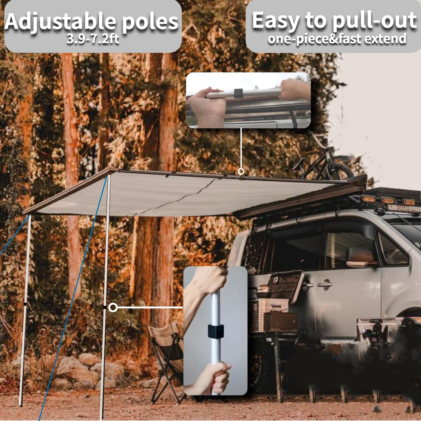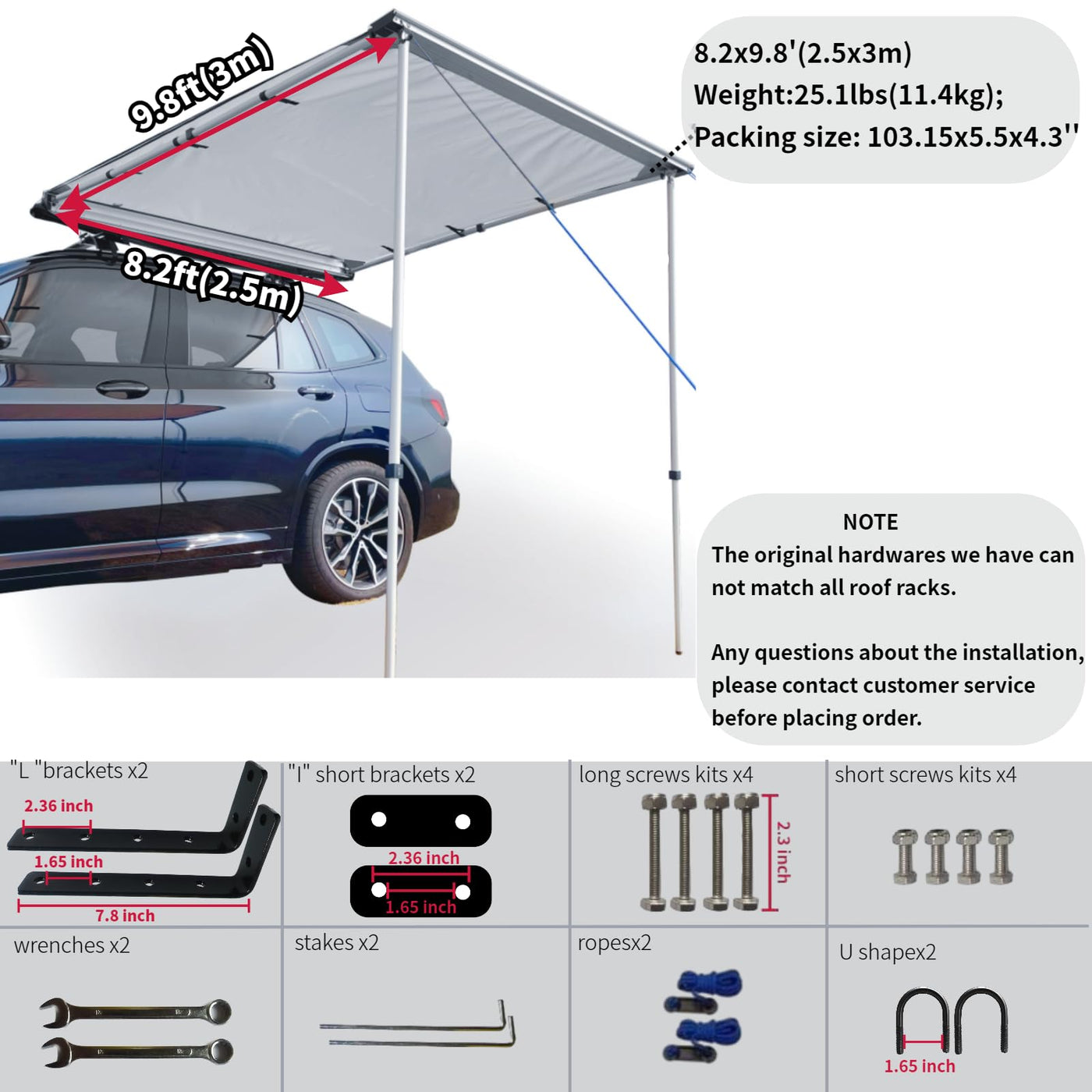 Danchel Outdoor Car Awning, Roof Rack Pull-Out Car Awning Overland, Waterproof Portable Car Side Sun Shelter Tarp For Suv/Truck/Van/Camper, 8.2X9.8Ft Gray