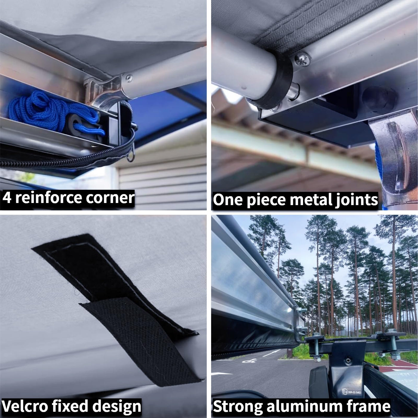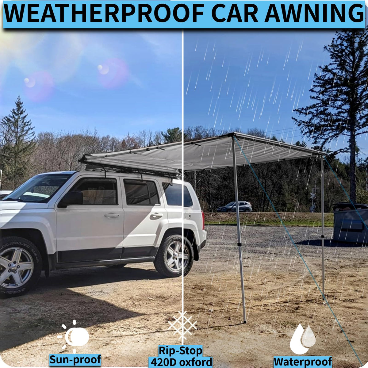Q: What vehicles are compatible with the DANCHEL OUTDOOR Car Awning?A: The DANCHEL OUTDOOR Car Awning is designed to fit various larger vehicle builds, including SUVs, trucks, vans, and campers. Ensure your vehicle has a suitable roof rack to attach the awning securely.