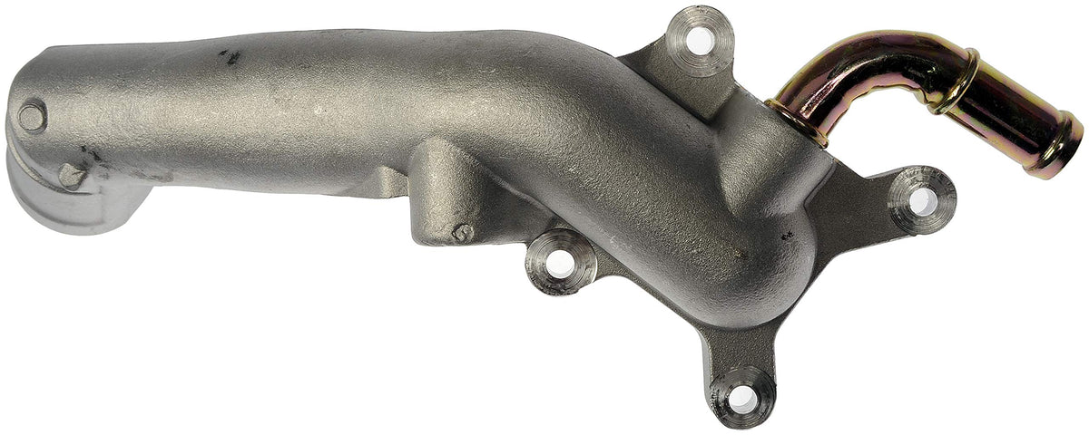 Q: How does the Dorman coolant water outlet compare to the original part?A: This replacement engine coolant water outlet is engineered to match the fit and durability of the original part, ensuring reliable performance. It is constructed to withstand extreme temperature changes, reducing the risk of cracking and leaking, which can be common with lower-quality alternatives.