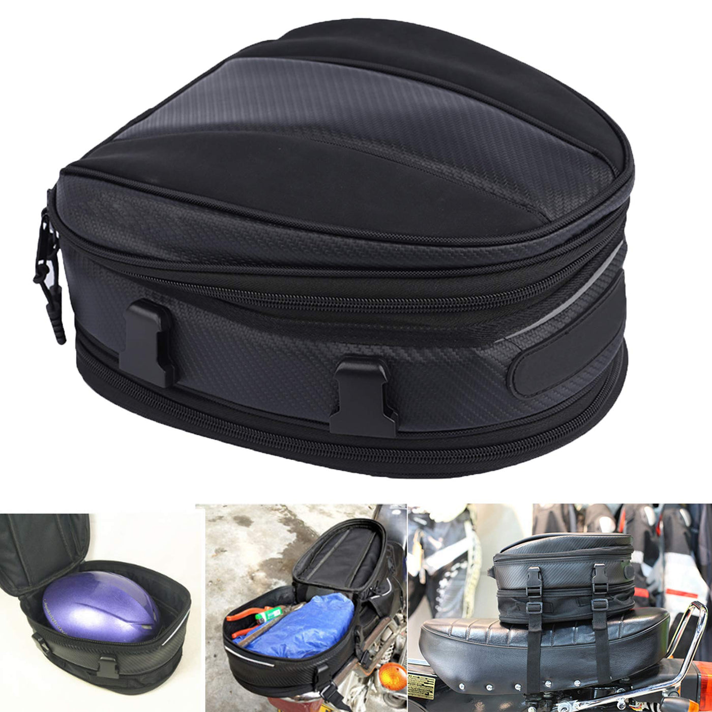 Features: This Is A Motorcycle Tail Bag That Mounts To The Tail Section Or Seat Of Your Bike Which Is A Compatible Position To Pair This Bag With A Pair Of Saddlebags. With An Expandable Lid That Increases The Storage Capacity Of The Main Compartment, This Seat Bag Has The Perfect Amount Of Room For Quickly Storing And Removing Essential Items.The Compact And Stylish Design Is Constructed With The Highest Quality Pu Leather That Is Very Strong And Durable. A Good Motorcycle Bag To Store Your Wallet, Phone, Camera, Energy Drinks, Cigarette, Etc.Also Features A Expandable Bottom Section To Enlarge Storage Space. Easy To Install, Bundle The Motorcycle Helmet Bag With 2 Straps On The Motorcycle Mat, Tighten And Fasten With 4 Buckles.
