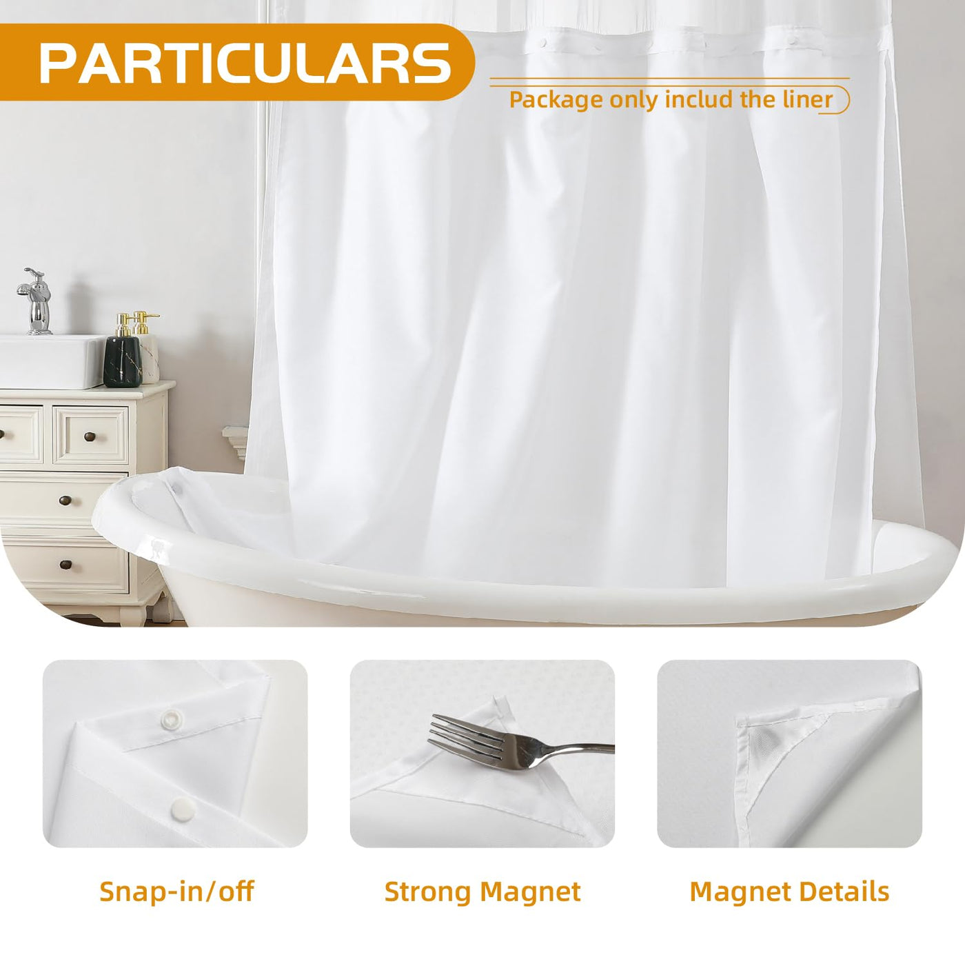 ? Package contains: EACHOPE Fabric Shower Curtain Liner with Snap;Shower curtain and hooks not included