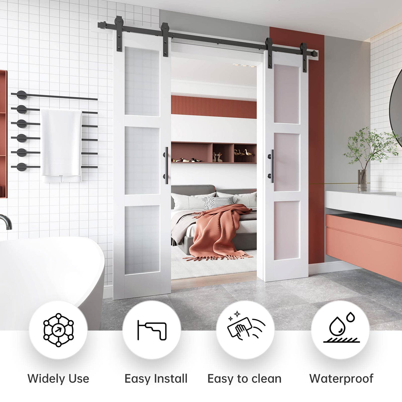 Q: Can this sliding barn door be used in homes with pets?A: Absolutely! The water-proof and scratch-resistant PVC surface is designed to withstand wear and tear, making it suitable for homes with pets.