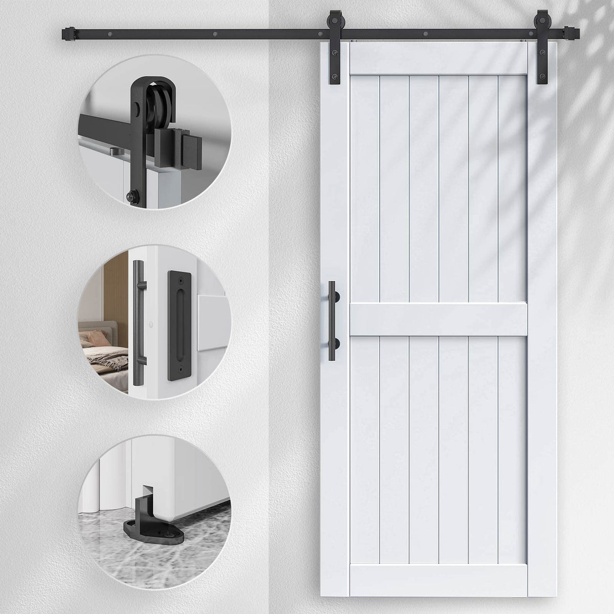 EaseLife 36in x 84in Sliding Barn Door with 6.6FT Barn Door Hardware Track Kit Included,Solid LVL Wood Slab Covered with Water-Proof & Scratch-Resistant PVC Surface,DIY Assembly,Easy Install,White