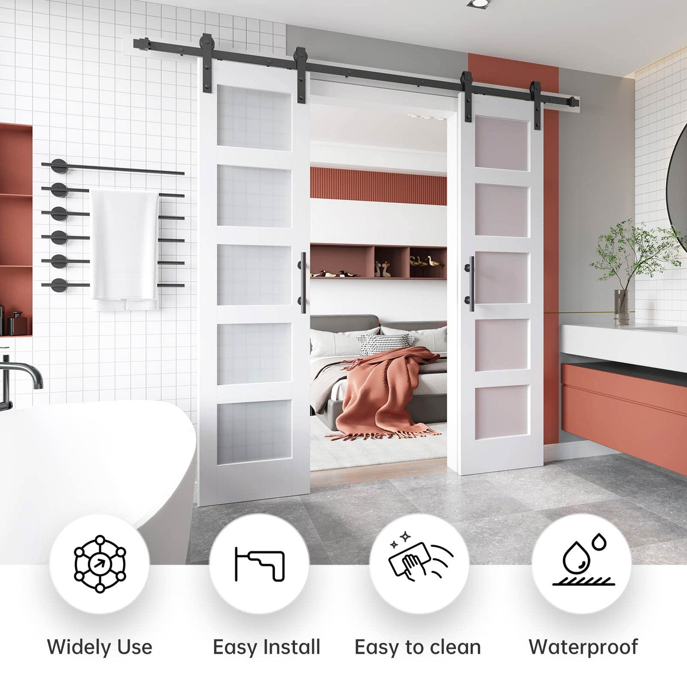 Q: Can this barn door be used in spaces with pets?A: Yes, the water-proof and scratch-resistant surface is designed to withstand wear and tear, making it suitable for homes with pets.