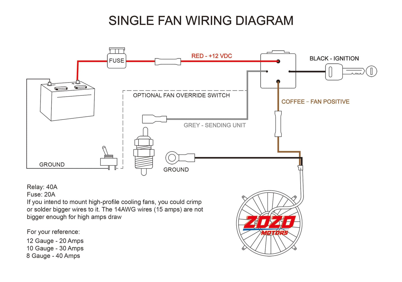 How To Use: Connect The Color-Coded Wires Per The Diagram (Product Image 2) And Notes Below: Red - To +12Vdc Coffee - To Fan Positive Black - To Ignition Grey - To Sending Unit