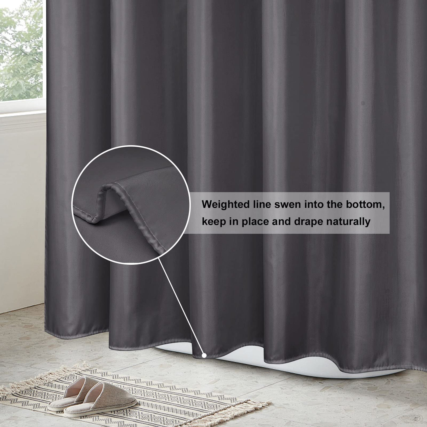 Eurcross Dark Gray Fabric Longer Shower Curtain Liner 72 X 84 Inch Length,Water Repellent Durable Solid Grey Extra Long Shower Curtains For Bathroom With Hooks