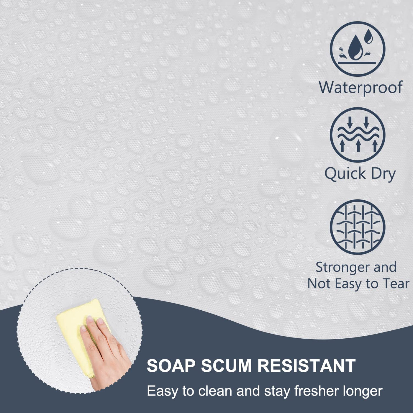 Q: Is the shower curtain liner waterproof?A: Yes, this shower curtain liner is 100% waterproof, designed to keep water from splashing out of the shower area and ensuring your bathroom remains dry.