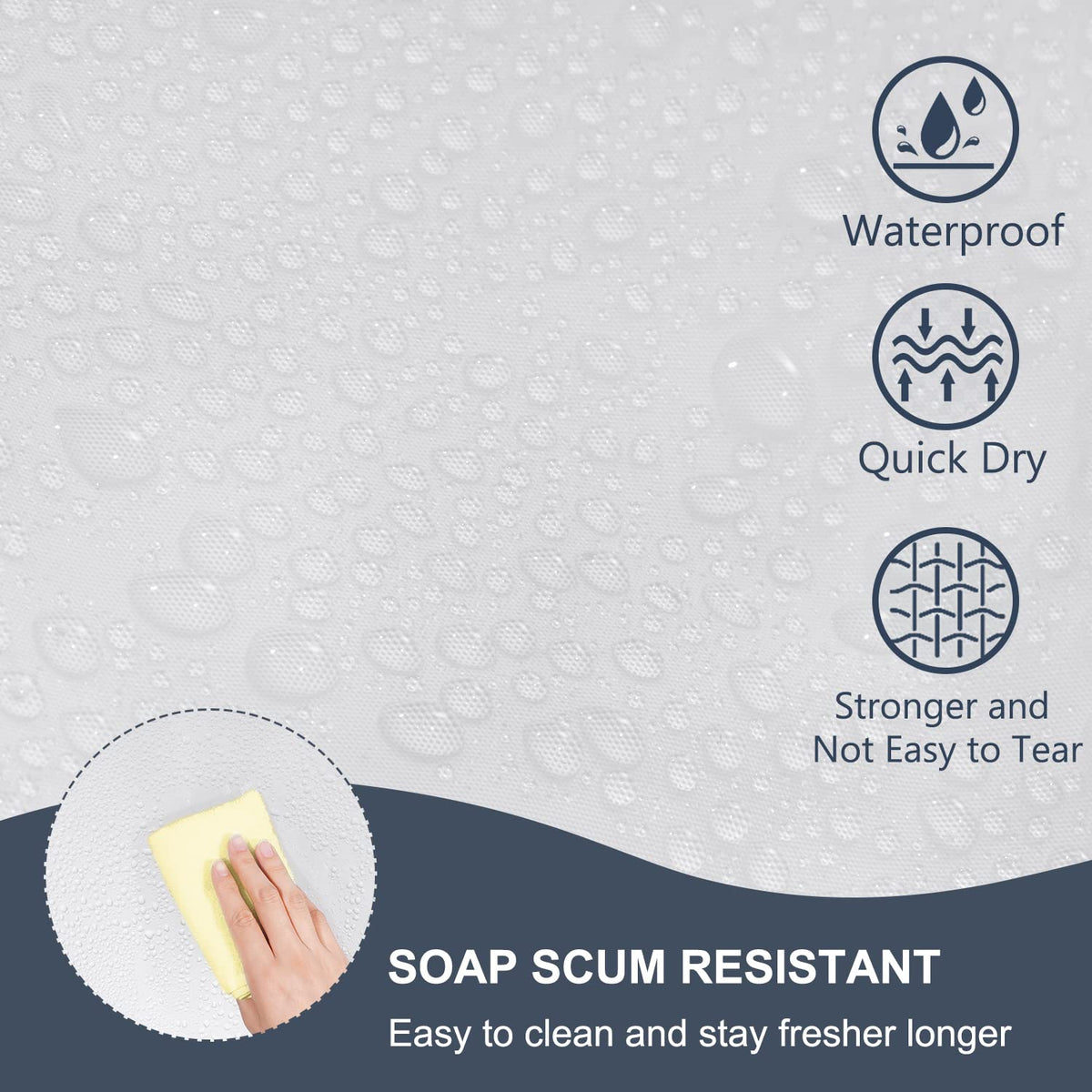 Q: How do I clean the shower curtain liner?A: Cleaning the EurCross shower curtain liner is simple. Just wipe it with a damp cloth or rinse it with water. For tougher stains, a little baking soda can be added to enhance cleaning.