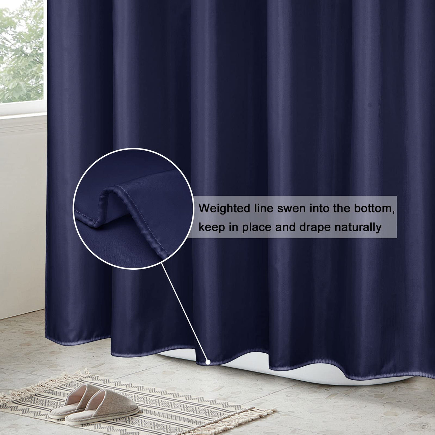 Eurcross Navy Blue Shower Curtain, Water-Resistant Machine Washable Fabric Shower Curtain For Bathroom 72 X 72 Inches