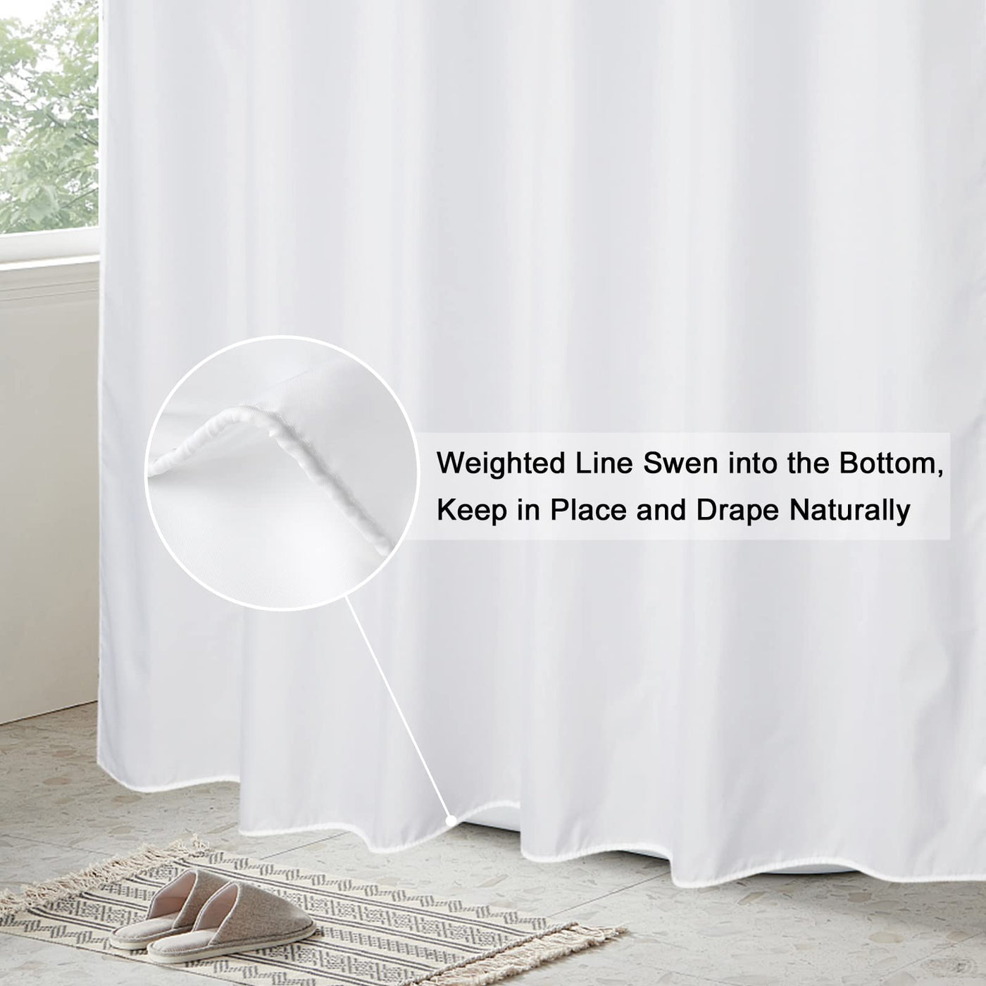 Eurcross Solid White Shower Curtain 72 X 72Inches Long, Water-Resistant Fabric Shower Curtain Liner For Bathroom
