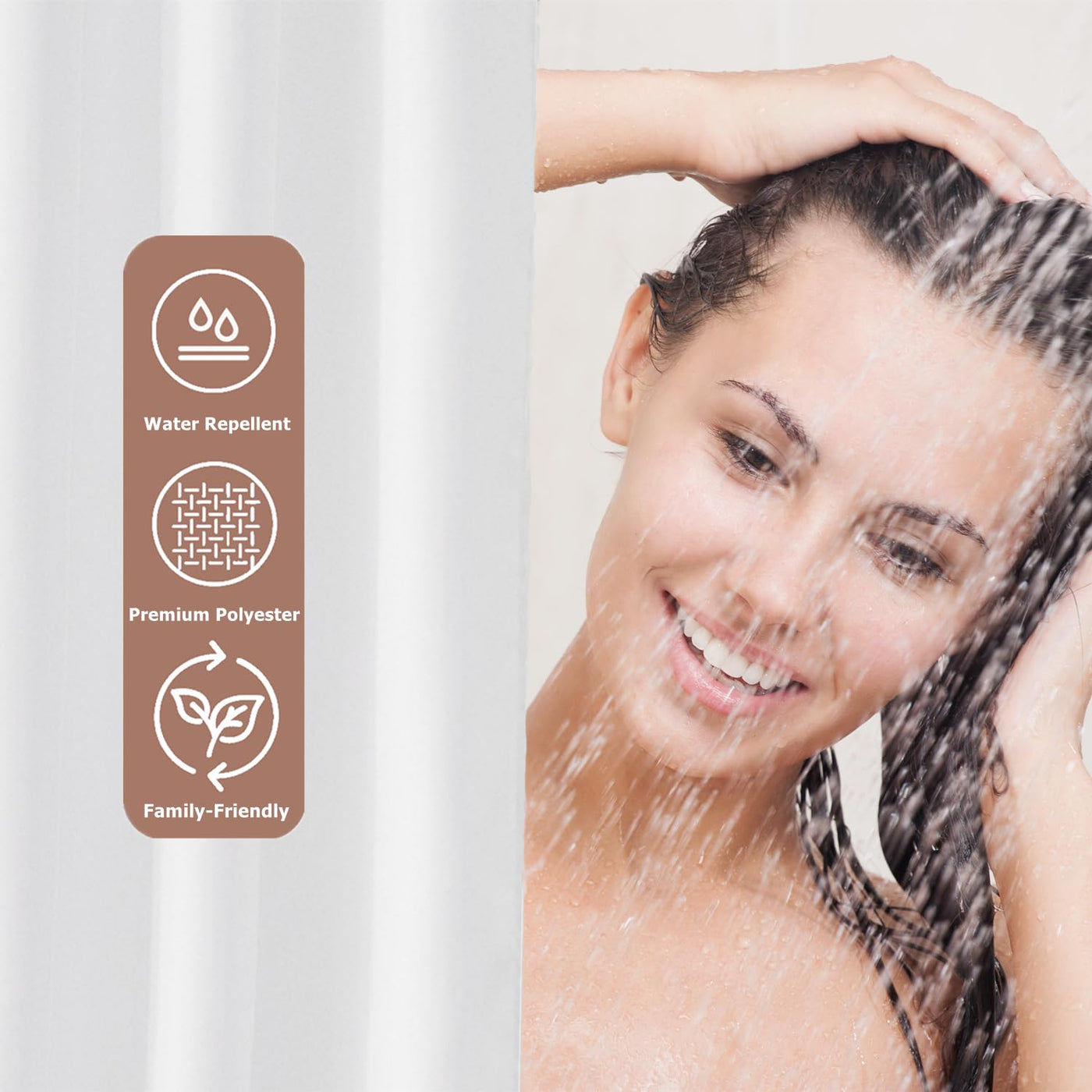 Q: Are there any chemicals in the Felisa Shower Curtain Liner?A: No, the Felisa Shower Curtain Liner is made from high-quality polyester fabric that is free from chemical smells, ensuring a safe and pleasant experience in your bathroom.