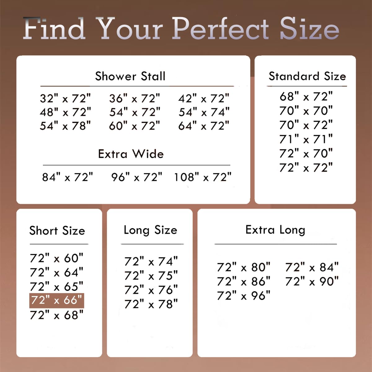 Q: What are the dimensions of the Felisa shower curtain liner?A: The Felisa shower curtain liner measures 72 inches wide by 66 inches long, making it suitable for a variety of shower sizes and providing ample coverage.