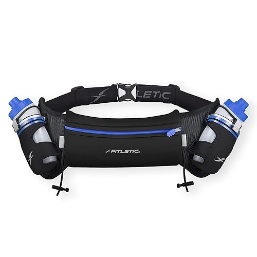 Q: Is the Fitletic Hydration Running Belt suitable for all body types?A: Yes, the Fitletic Hydration Running Belt is designed with a tailored fit, featuring hip hugging waist belts that contour to your individual body shape, making it suitable for most body types.