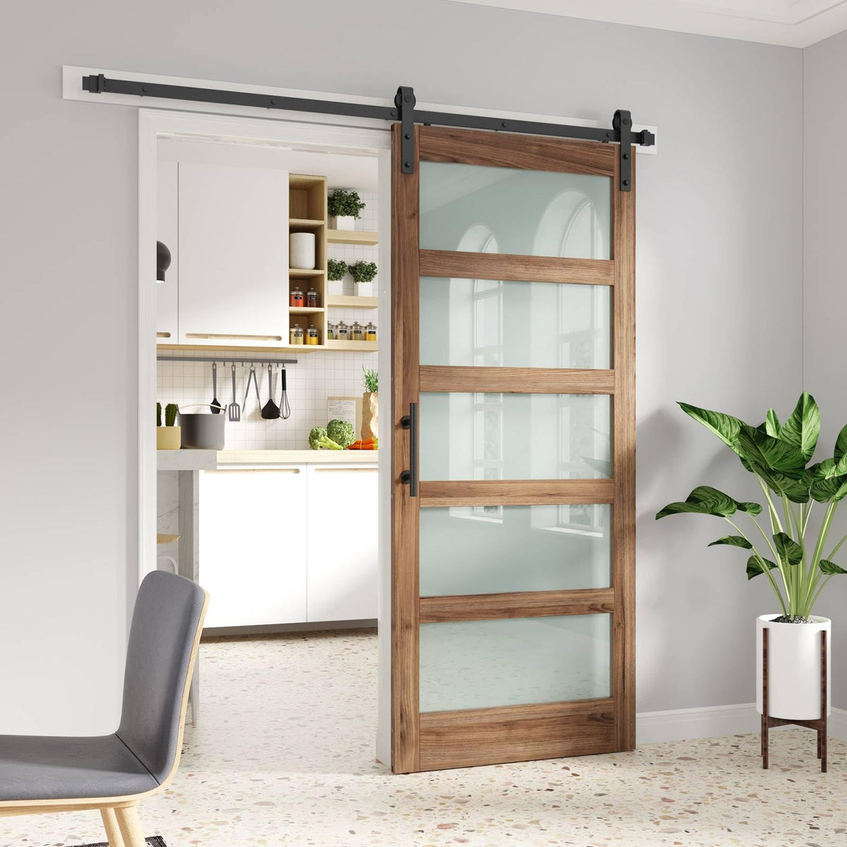 Fredbeck 38 X 84 Inch Glass Barn Door With 6.6Ft Barn Door Hardware Kit Included,5-Panel Frosted Glass, Water-Proof Surface,Pre-Drilled Holes,Need Assembly,Fit 35In-37In Opening