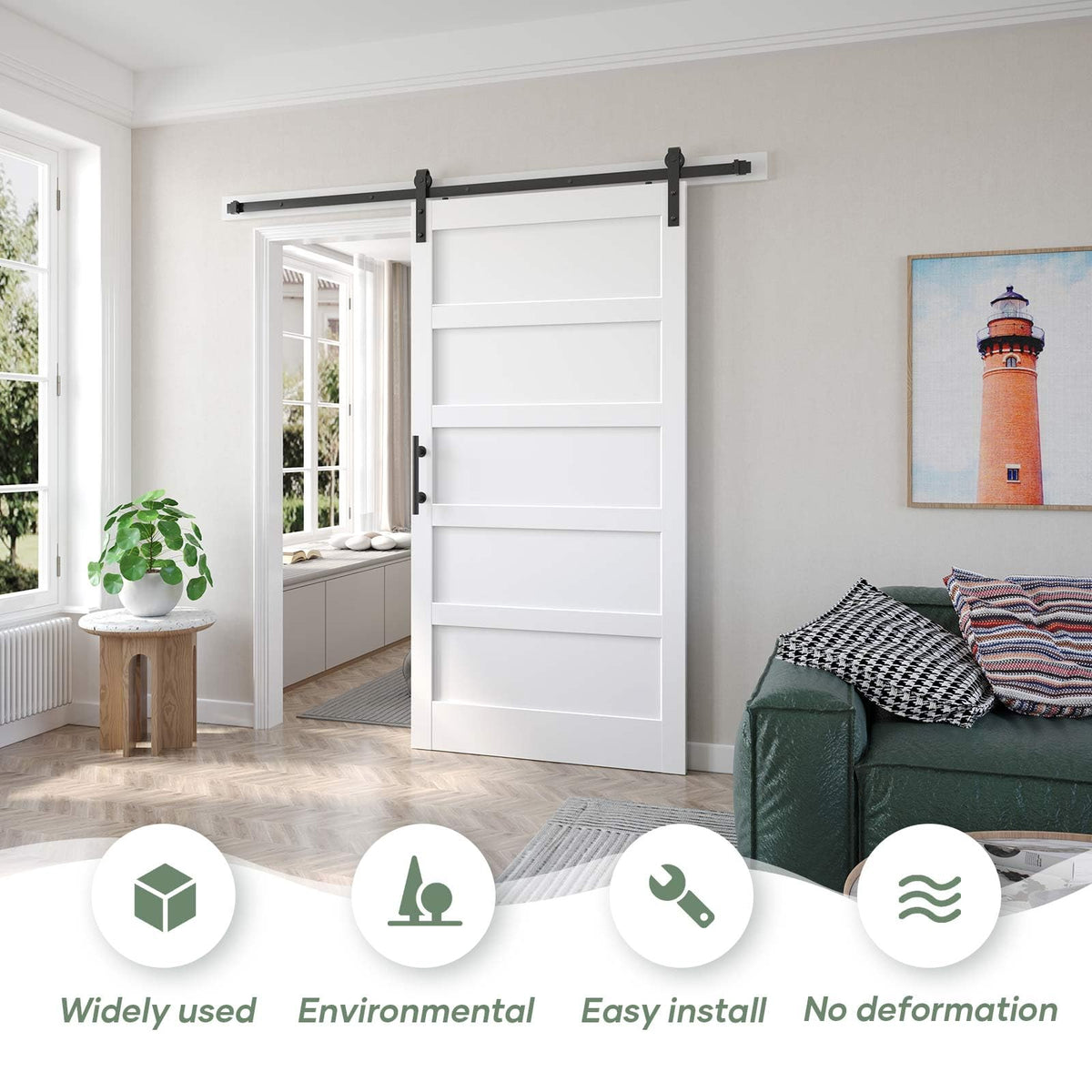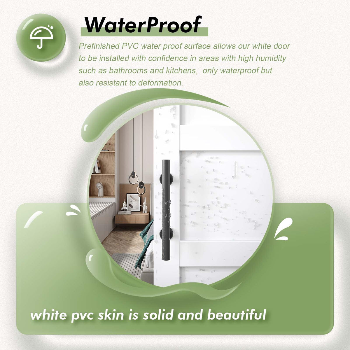 Q: Is the Fredbeck barn door waterproof?A: Yes, the surface of the Fredbeck barn door is prefinished with PVC, making it waterproof and resistant to scratches, ensuring longevity and ease of maintenance.