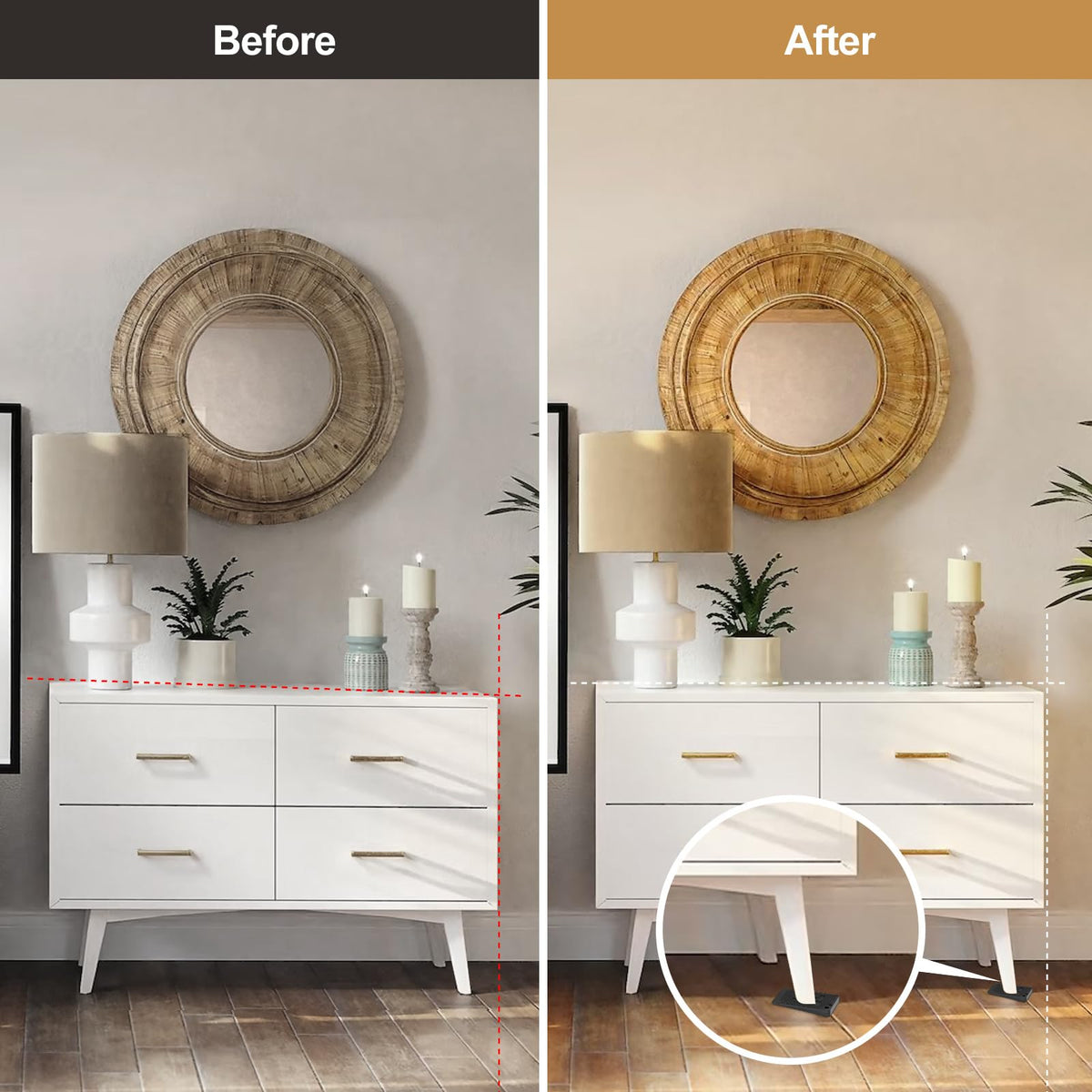 Q: How do I use the Furniture Levelers Pads?A: Simply place the Furniture Levelers Pads under the legs of the furniture that needs leveling. There's no need for drilling or additional accessories, making them easy to use.