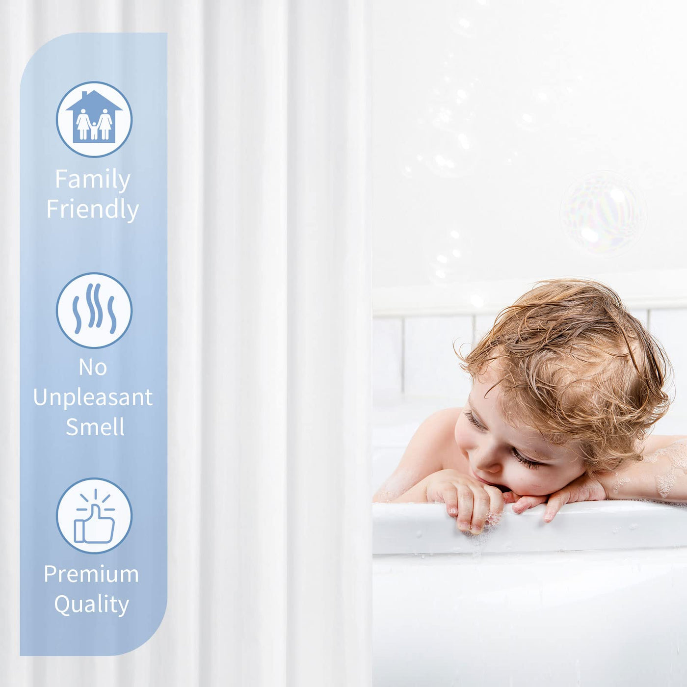 Q: Does the shower curtain liner come with hooks?A: Yes, the Gibelle shower curtain liner comes with 12 plastic hooks included, making it convenient for you to install it right away.