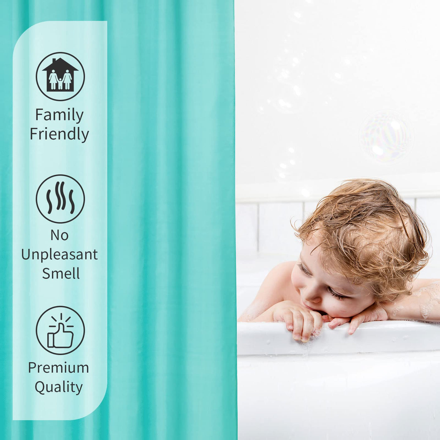 Gibelle Teal Fabric Shower Curtain Or Liner, 72X72 Waterproof Shower Curtain Liner For Bathroom With Metal Grommets And 12 Plastic Hooks, Soft Cloth & Hotel Quality, Machine Washable