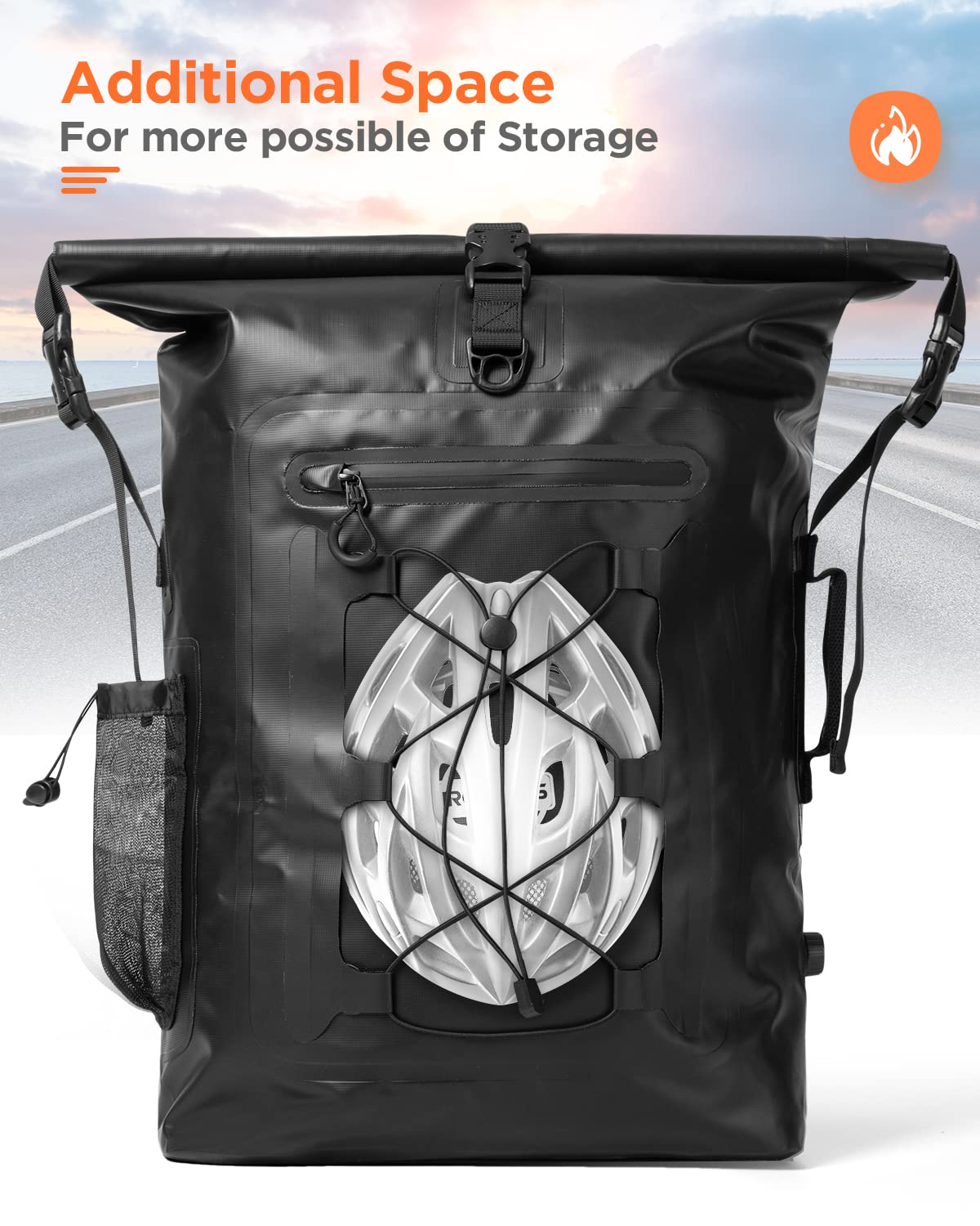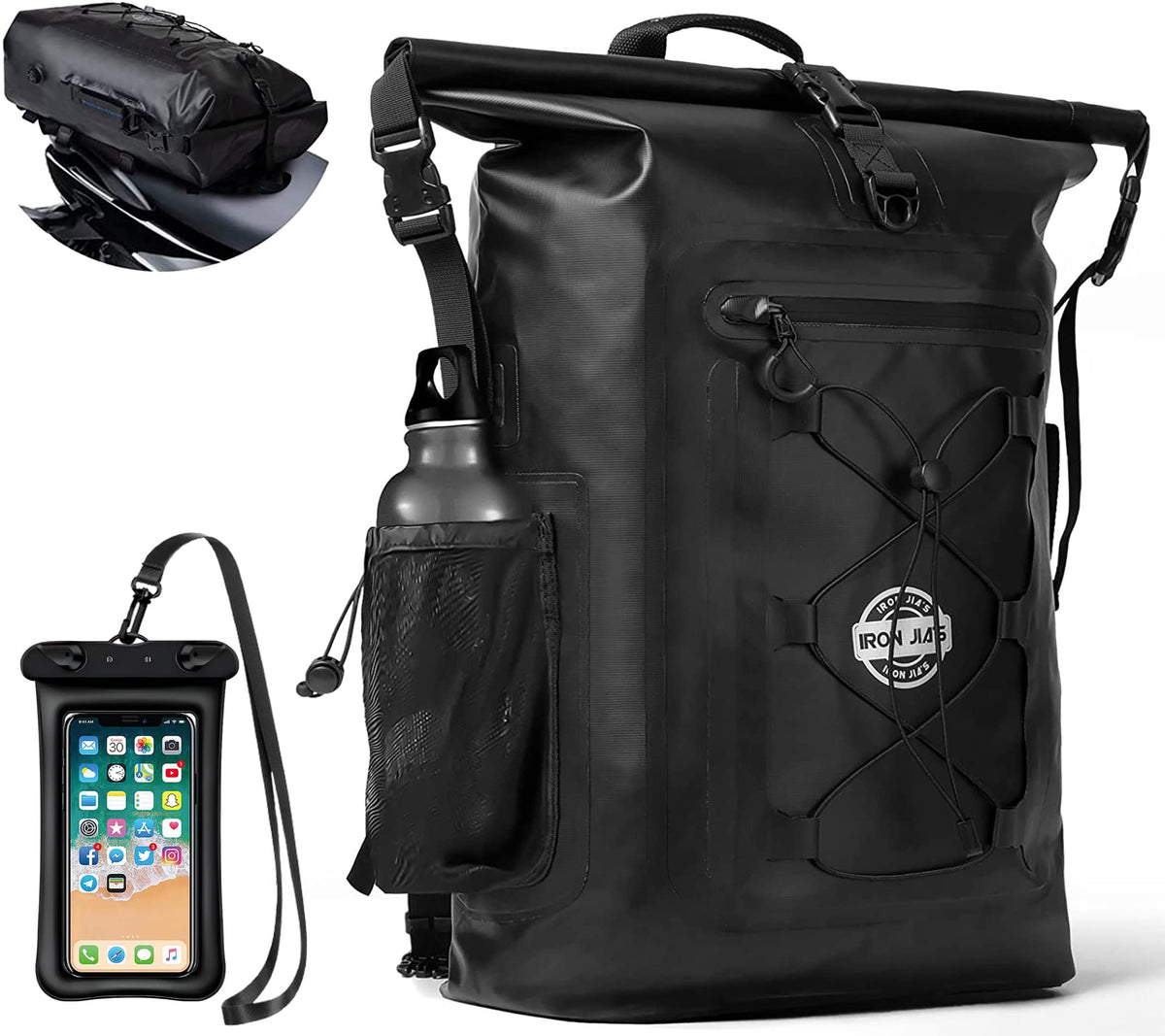 35L Large Capacity With Zipper Pocket: Waterproof Backpack Has Enough Room To Store Items, Max Capacity Is 40L. Mesh Pocket Spaced From The Main Compartment On The Left Side Of The Backpack, To Better Separate Hydration, Sweaty Clothes, Towels Or Other Personal Things. | Easy To Strap To Sissybar And Comfortable To Carry: Removable Shoulder Straps With Chest Whistle Buckle Which Helps You Lock Your Backpack In Back Securely And Comfortably. Sponge Filled Shoulder Straps Greatly Improve The Comfort. You Can Also Easily To Attach The Backpack To Motorcycle. | Waterproof & Durable Dry Bag: 500D Pvc, With Seamless Material With High Water Repellency Construction. There Is No Need To Worry About Items In The Backpack Getting Wet. And It Is Resistant To Corrosion And Abrasion. It Can Be Travel Bag, Tail Bag For Motorcycle Touring, And General Purpose Adventure Bag. You Can Bring It Into Various Harsh Outdoor Environments. | Reflective Strip & Vent System: We Set Reflective Trim At Motorcycle Backpack To Increase Night Safety. Rotate The Air Valve On The Right Side Of The Bag To Eliminate Excess Air And Make The Contents Of The Bag More Compact. | Roll Top Design Ensure Your Gear Stay Completely Dry While Traveling, Kayaking, Rafting, Riding, Canoeing, Camping, Hiking, Fishing Or Going Out On Rainy Days. It’S Convenient To Carry Or Strap To Motorcycle.