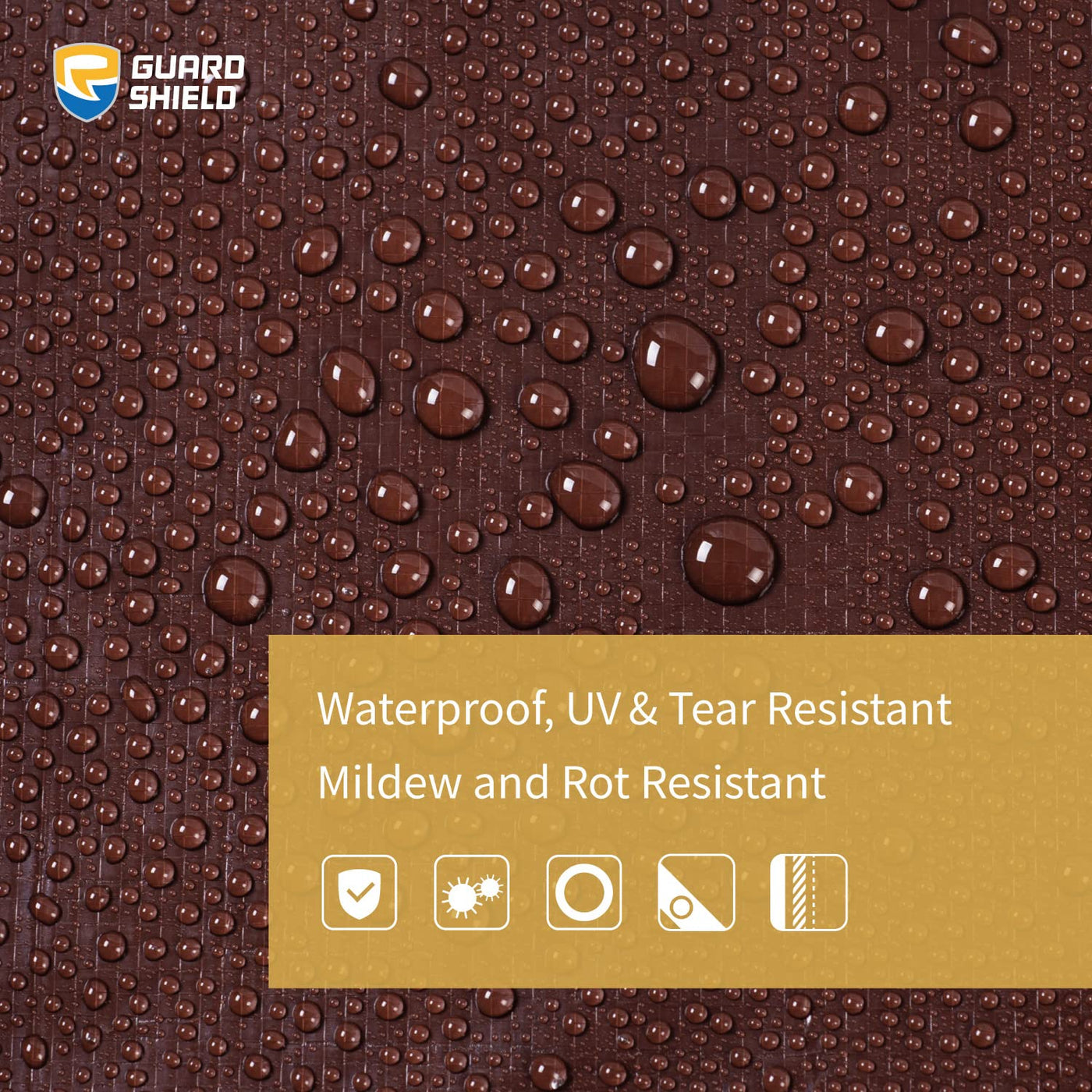 Q: Is the GUARD SHIELD tarp waterproof?A: Yes, the GUARD SHIELD tarp is made from woven and coated polyethylene, ensuring it is waterproof and suitable for protecting your belongings from rain and moisture.