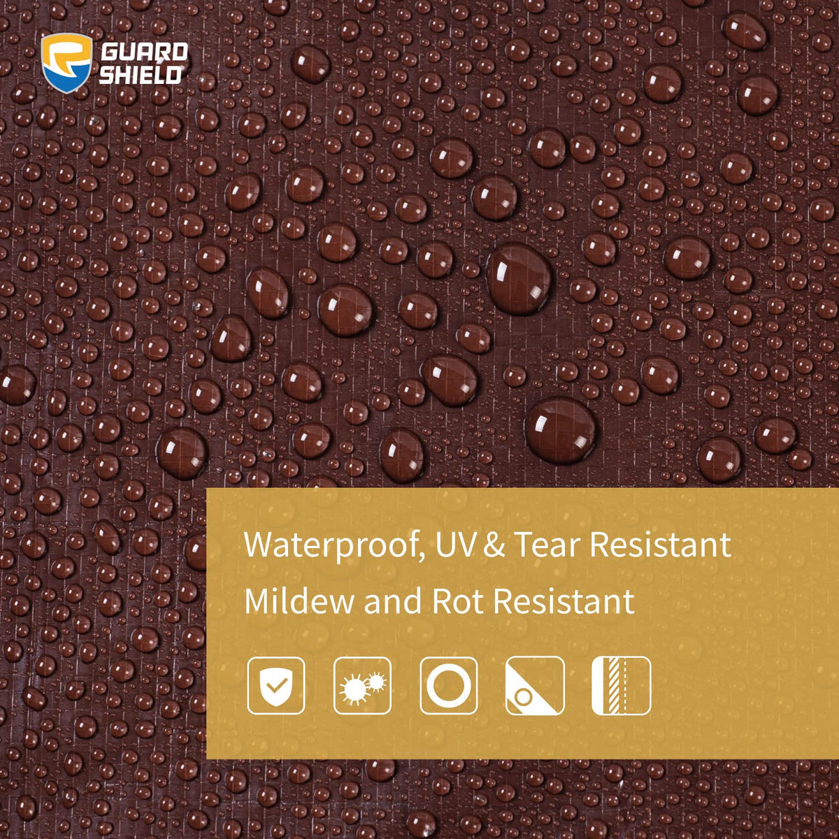 Q: What are the main applications for the GUARD SHIELD Brown/Green Tarp?A: The GUARD SHIELD Brown/Green Tarp is versatile and can be used for various applications such as covering canopies, carports, construction sites, tents, outdoor events, yard projects, and even as a protective cover for vehicles, pools, and boats.
