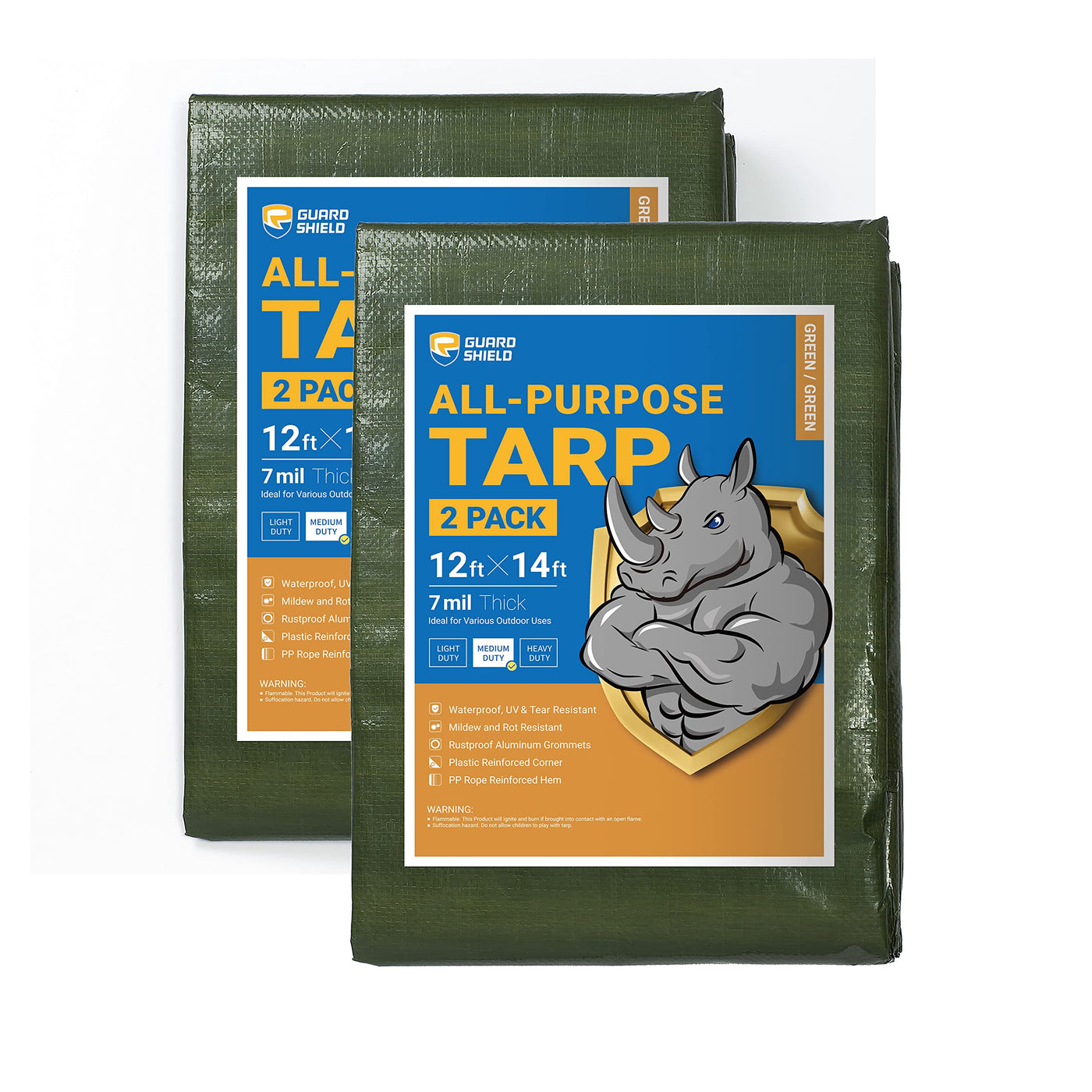 Guard Shield Green Tarp Waterproof 12X14 Feet Medium Duty All Purpose Poly Tarps Cover 7Mil (2-Pack)