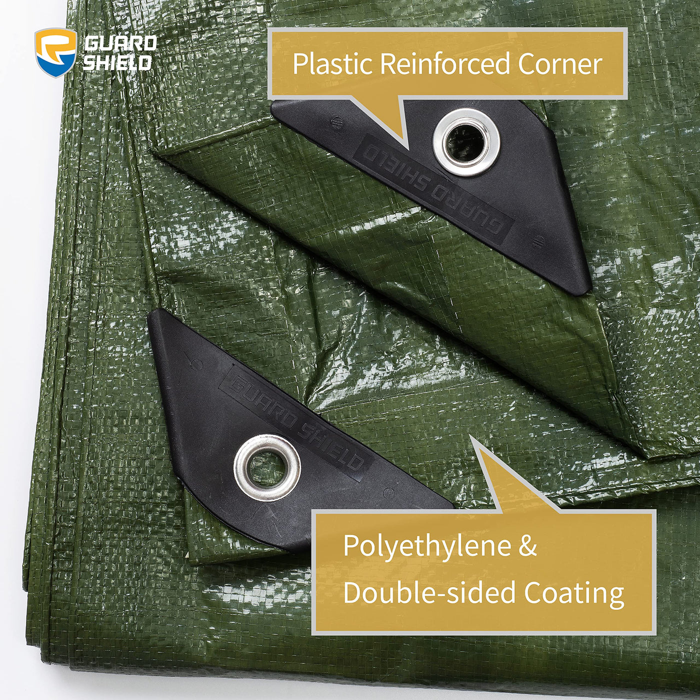 Q: What types of items can I cover with this tarp?A: You can use the GUARD SHIELD Green Tarp to cover a variety of items including vehicles, outdoor furniture, pool equipment, and even as a shelter for camping, making it a versatile choice for many applications.