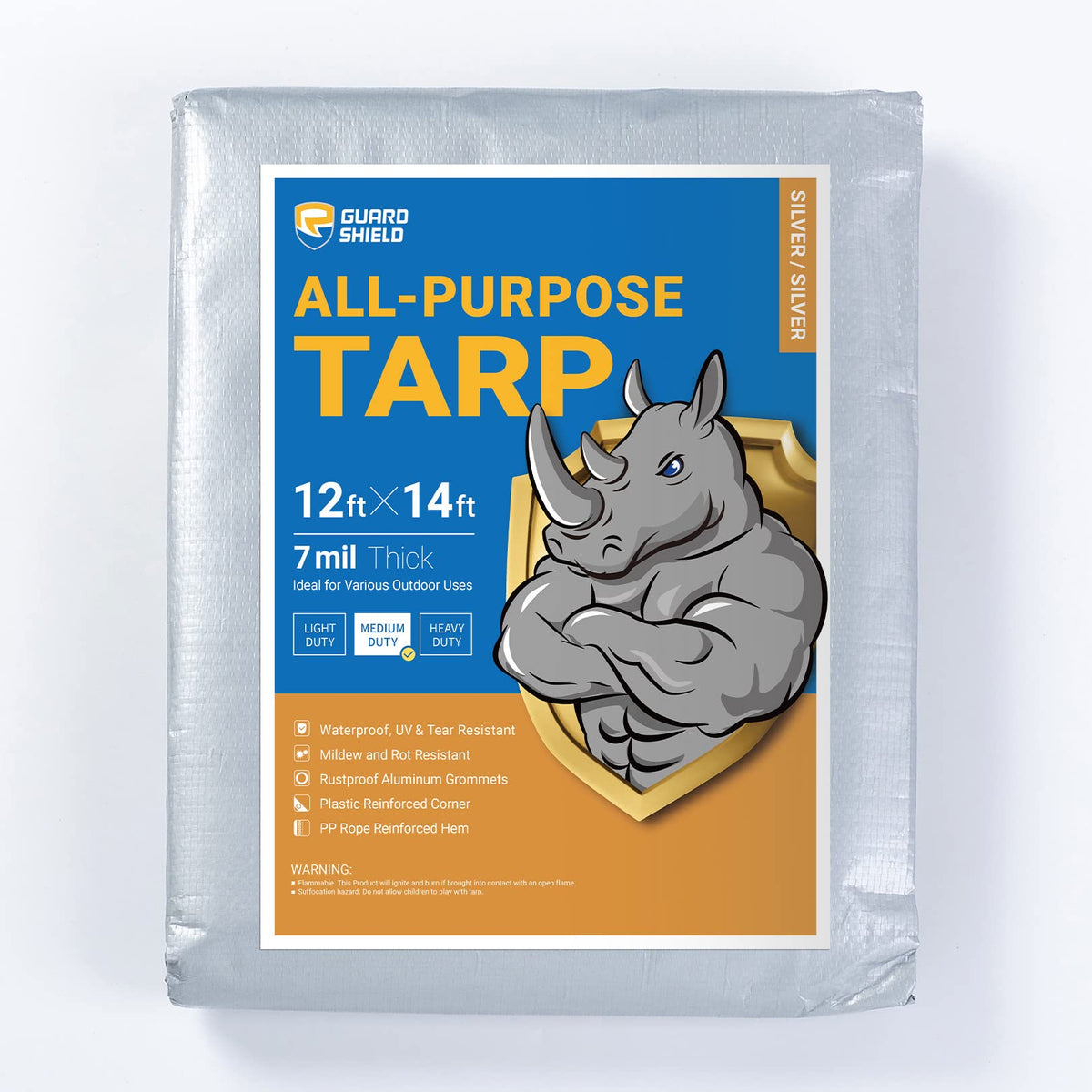 Guard Shield Silver Tarp Waterproof 12X14 Feet Medium Duty All Purpose Poly Tarps Cover 7Mil