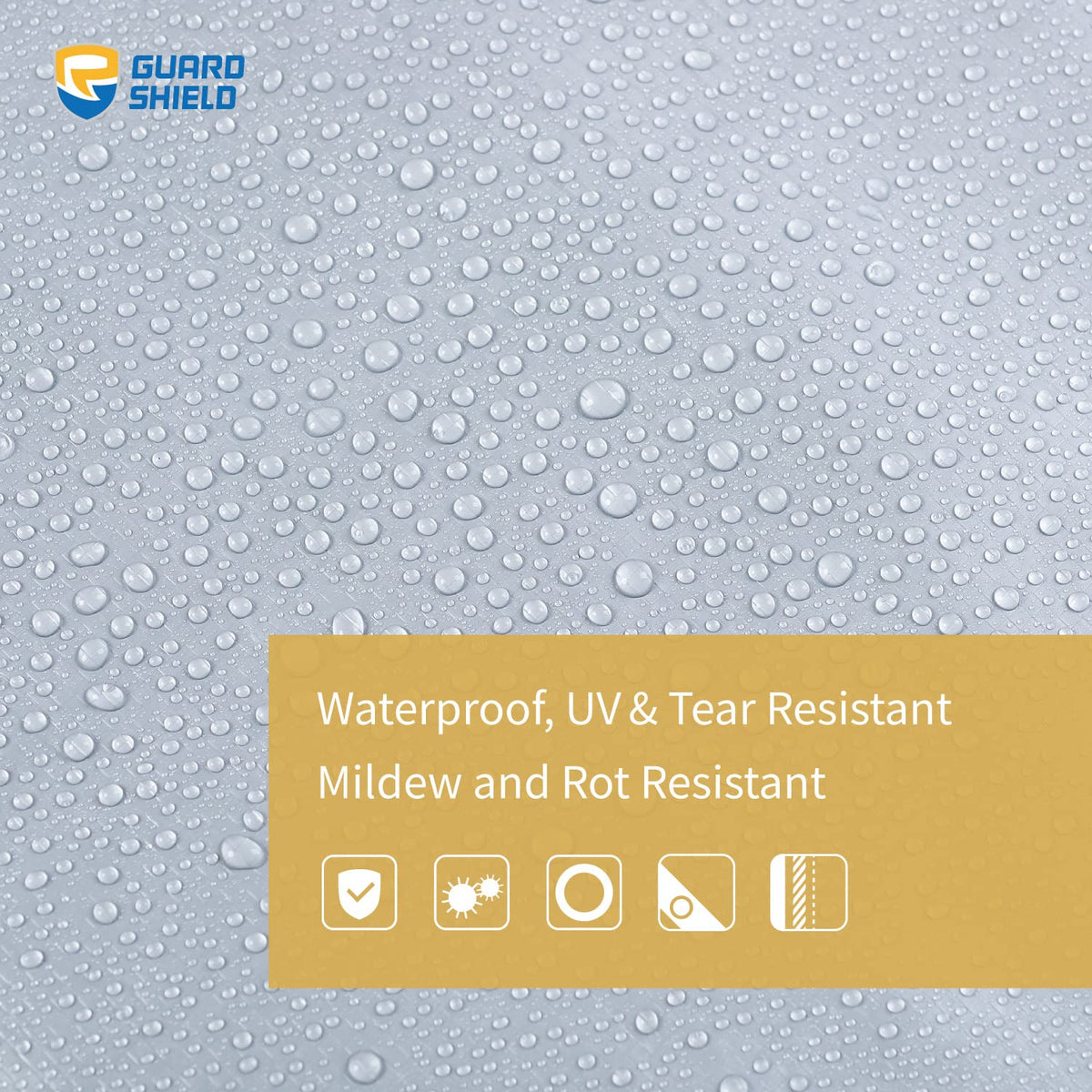 Q: Is the tarp waterproof and UV resistant?A: Yes, the GUARD SHIELD Silver Tarp is waterproof, making it effective for outdoor protection against rain and moisture. It also offers UV resistance to protect your belongings from sun damage.